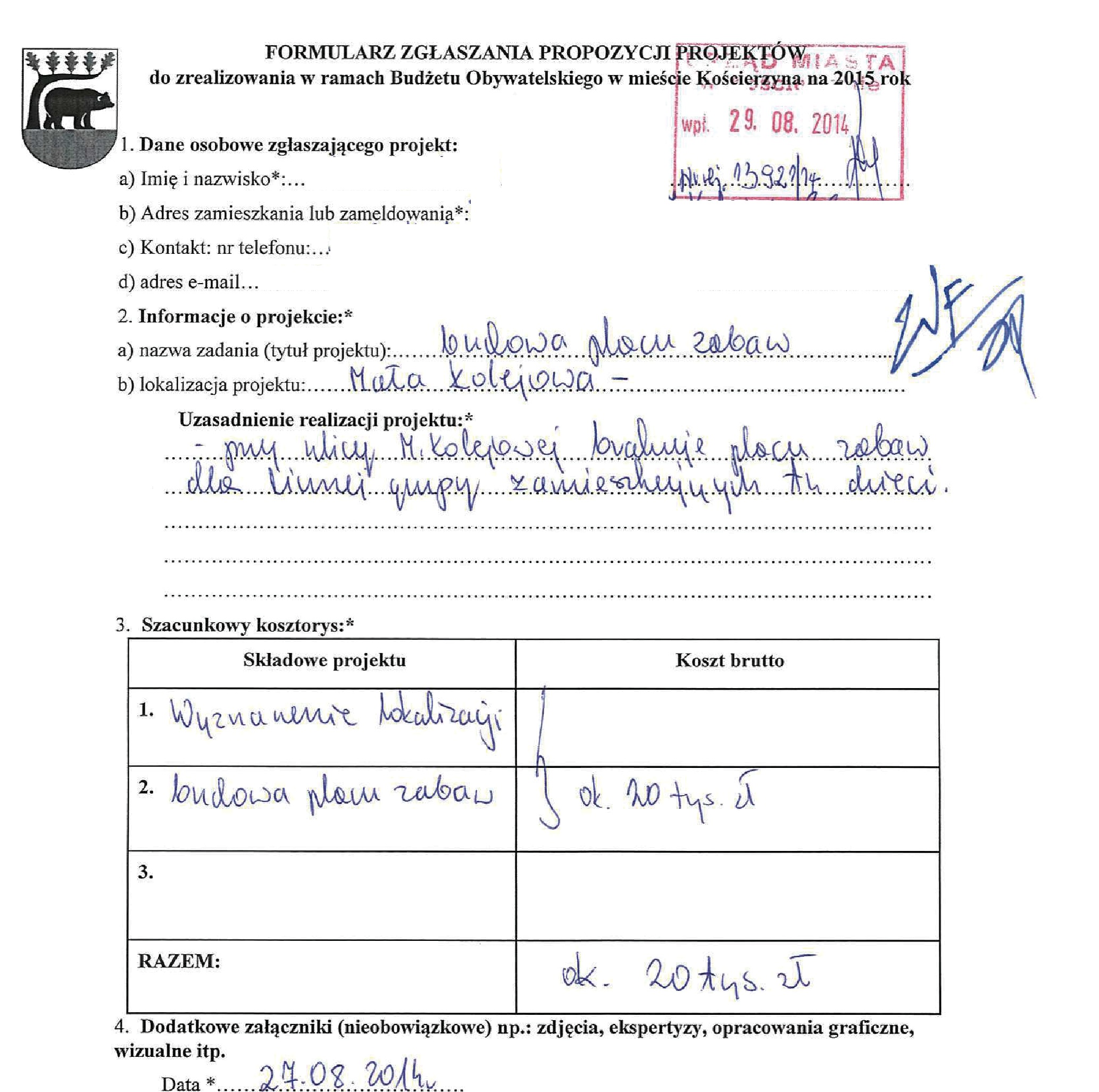 Budowa placu zabaw przy ul. Mała Kolejowa - WNIOSEK |
