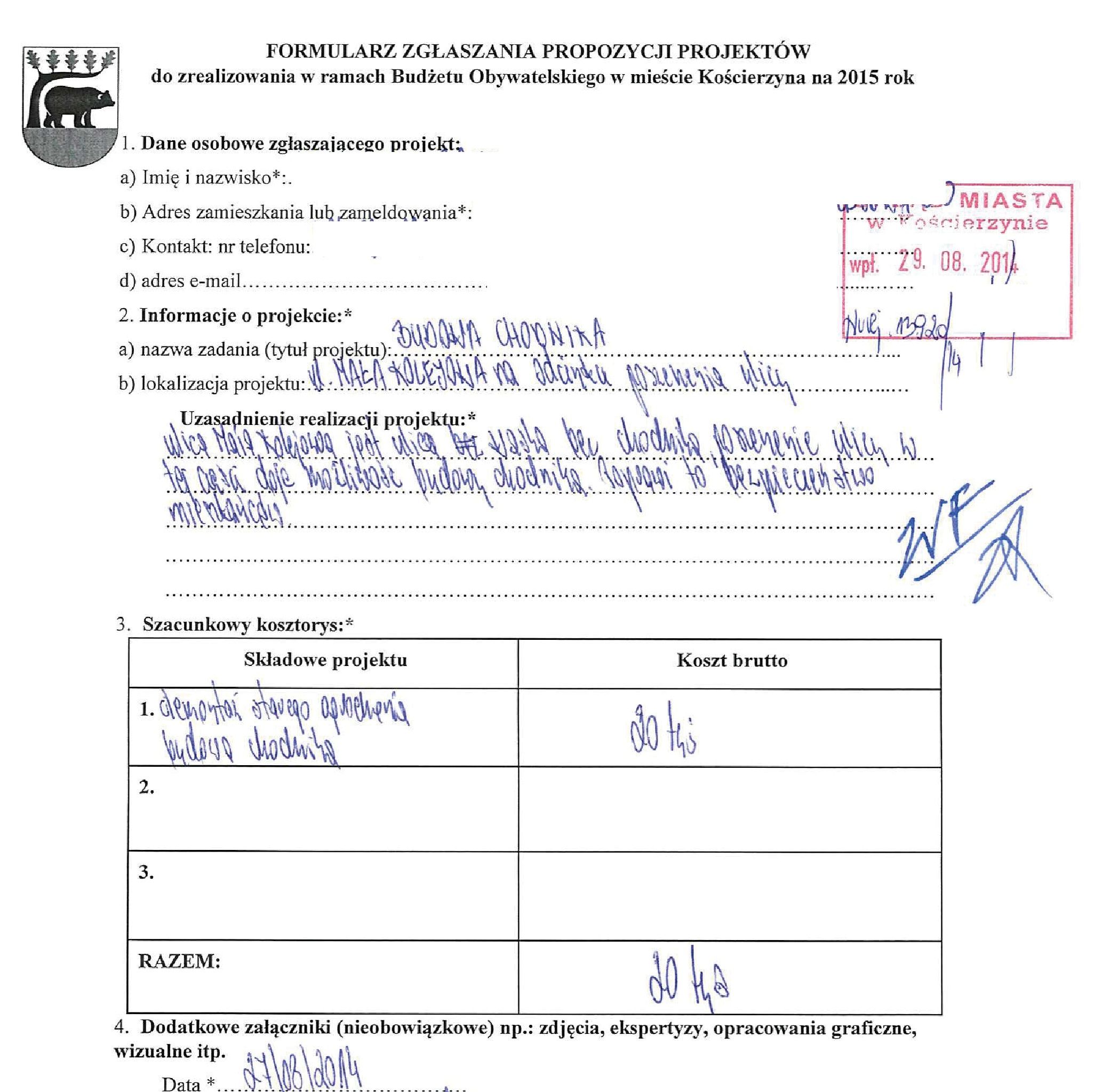 Wyniki głosowania na zadania do Budżetu Obywatelskiego miasta Kościerzyna na 2015 rok