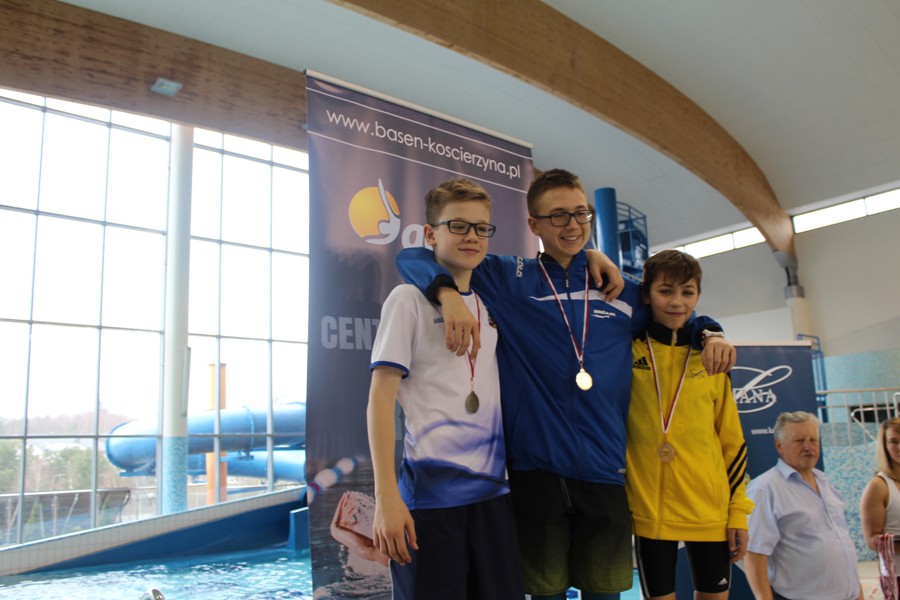 Złoty medal : trzykrotnie Marcin Łukowicz uczeń Gimnazjum Montessori  w Kościerzynie i Marta Majewska uczennica I LO w Kościerzynie ;
