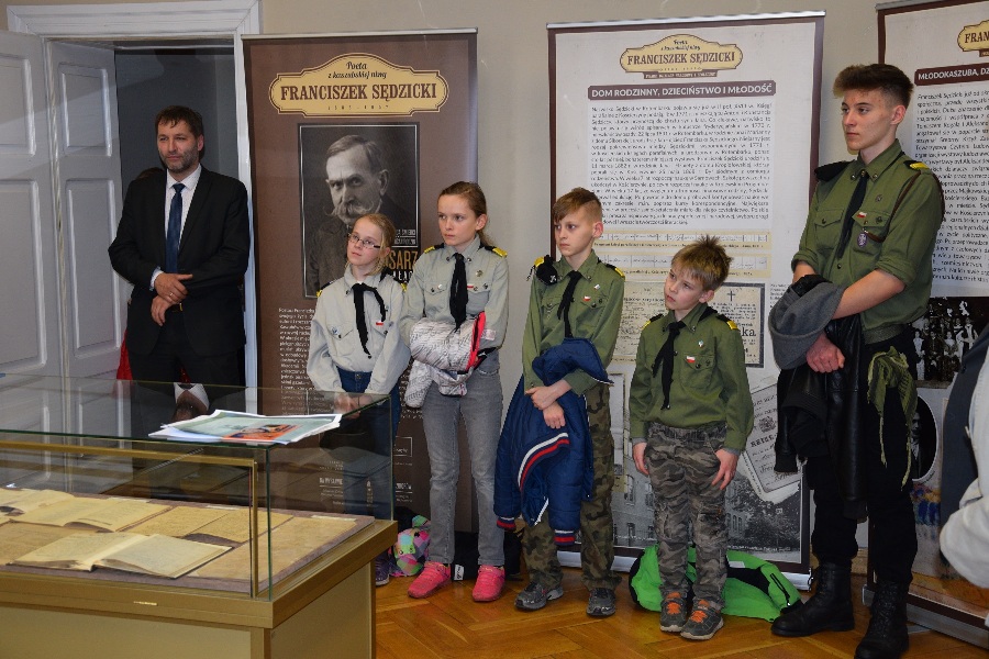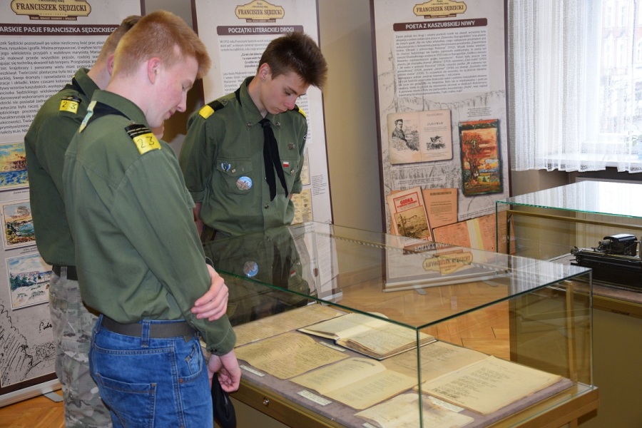 Stąd też dorobek literacki pisarza z Rotembarku stał się przewodnim motywem ekspozycji, w ramach której zobaczyć można m.in. kilka jego rękopisów, maszynopisy oraz pierwszy wydany tomik poezji pt. „Dumki z kaszubskich pól”. Na uroczystość przybyli m.in. przedstawiciele Zrzeszenia Kaszubsko-Pomorskiego Oddział w Kościerzynie, Jolanta Kowalewska, wizytator Delegatury Kuratorium Oświaty w Kościerzynie, harcerze z Hufca ZHP Kościerzyna im. Franciszka Sędzickiego, Lidia Walewska - dyrektor Zespołu Szkolno-Przedszkolnego nr 3 w Kościerzynie, któremu również patronuje wybitny Kaszuba z Rotembarku oraz burmistrz Kościerzyny Michał Majewski, który dokonał oficjalnego otwarcie wystawy. Po uroczystościach w muzeum złożono kwiaty pod pomnikiem Franciszka Sędzickiego. Wydarzenie rozpoczęło obchody upamiętniające postać poety z Rotembarku, związane zarówno ze wspomnianą rocznicą śmierci, jak też przypadającą w bieżącym roku 135. rocznicą jego urodzin. Kolejne uroczystości zaplanowano na 25 kwietnia br. w Zespole Szkolno-Przedszkolnym nr 3 w Kościerzynie. Ekspozycję pt. "Poeta z kaszubskiej niwy. Franciszek Sędzicki (1882-1957) pisarz, działacz narodowy i społeczny" można oglądać w sali wystaw czasowych w Muzeum Ziemi Kościerskiej do 11 czerwca br. Wstęp bezpłatny.