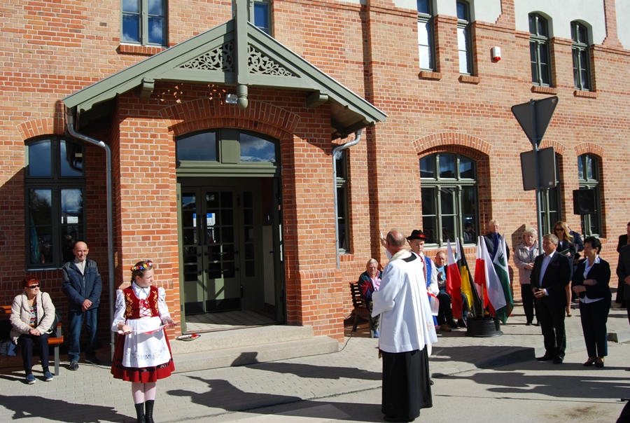 Następnie dworzec został poświęcony przez ks. Antoniego Bączkowskiego. Po krótkiej prezentacji projektu i historii Dworca uhonorowano osoby zaangażowane w realizację przedsięwzięcia, którym wręczono Statuetki Stolemów, symboli dawnej potęgi kaszubskiego Pomorza. Statuetki otrzymali: Stanisław Repiński, Wicemarszałkek Województwa Pomorskiego Ryszard Świlski, reprezentujący Instytucję Zarządzającą środkami UE w naszym województwie oraz Pan Julian Skrochocki. Na zakończenie uroczystości uczestnicy ceremonii, a tym mieszkańcy miasta, udali się na wspólne zwiedzanie Dworca. Całą uroczystość uświetniła swoim występem Orkiestra Begama.
