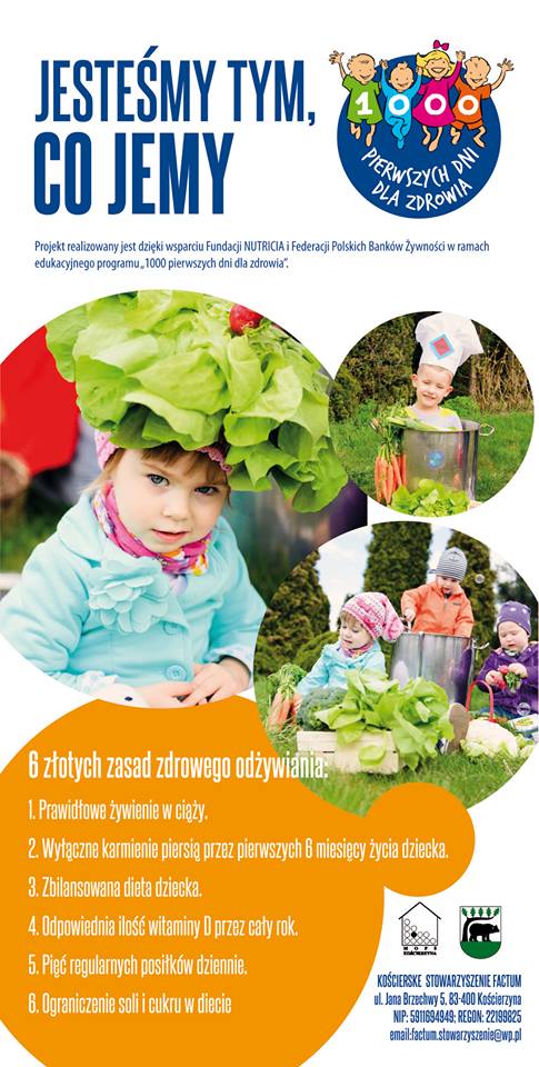 Proponujemy też zapoznawać się z programem zdrowego żywienia na stronie WWW.1000dni.pl, gdzie znajdą Państwo wiele ciekawych i fachowych informacji, odsyłamy również do profilu Kościerskiego Stowarzyszenia Factum https://www.facebook.com/pages/Ko%C5%9Bcierskie-Stowarzyszenie-Factum/288278748014169.