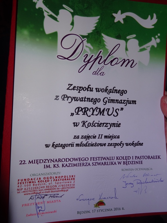 Gratulujemy wszystkim nagrodzonym jak i organizatorom tak wspaniałego przedsięwzięcia, a wokalistkom z Prywatnego Gimnazjum „Prymus” wielkiego sukcesu i wspaniałej promocji miasta, powiatu oraz Kaszub.