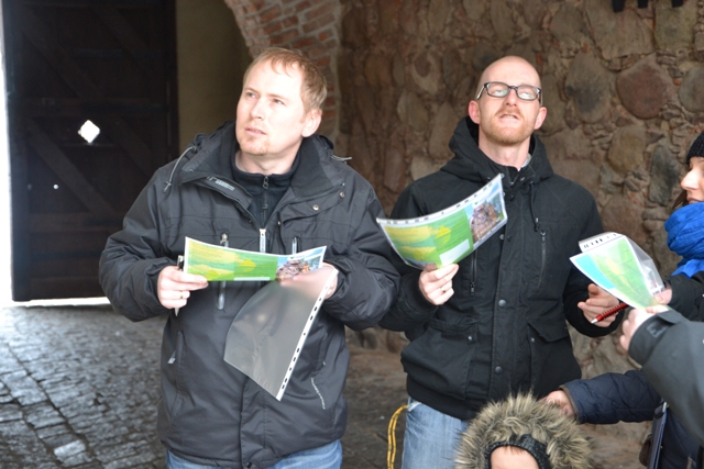 Na zaproszenie z okazji Międzynarodowego Dnia Przewodnika w Bytowie odpowiedziało przeszło 20 osób m.in. z Bytowa, Niezabyszewa, Dąbia, Rzepnicy oraz Pucka. Spotkanie na bytowskim zamku rozpoczęło się o godz. 11.00, gdzie zebranych powitała Lilianna Grosz i przedstawiła plan sobotniego zwiedzania oraz przygotowanych atrakcji. Na początku uczestnicy poznali historię ziemi bytowskiej oraz krzyżackiej warowni. Następnie wszyscy z wielką ochotą przystąpili do rozwiązywania questu „Zamkowe historie”, czyli rozpoczęli wędrówkę po dziedzińcu zamkowym i wokół murów, kierując się informacjami zawartymi w wierszowanych wskazówkach. Zabawa polegająca na odkrywaniu historii miejsca, rozwiązywaniu zagadek, poszukiwaniu ukrytych symboli, która skończyła się odnalezieniem skarbu, pochłonęła wszystkich bez reszty. Questing zakończyliśmy gorącą kawą i herbatą oraz wręczeniem uczestnikom nagród tj. przewodników, map, kalendarzy i komiksów w języku kaszubskim pt. „Arbata”. Kolejnym punktem programu było zwiedzanie Regionalnej Izby Rybackiej oraz Muzeum Zachodniokaszubskiego. Przewodnikiem po muzeum była również Lilianna Grosz, która opowiadała o eksponatach prezentowanych na wystawie etnograficznej związanej z kulturą materialną Kaszubów Bytowskich oraz o historii zamku za czasów krzyżackich i książąt zachodniopomorskich z dynastii Gryfitów. Na zakończenie sobotniego spotkania w Bytowie, w już bardziej kameralnym gronie, uczestnicy obejrzeli w izbie rybackiej film pt. „Rzeka powrotów”, film opowiadający o rzece Słupi i rybach żyjących w jej wodach.