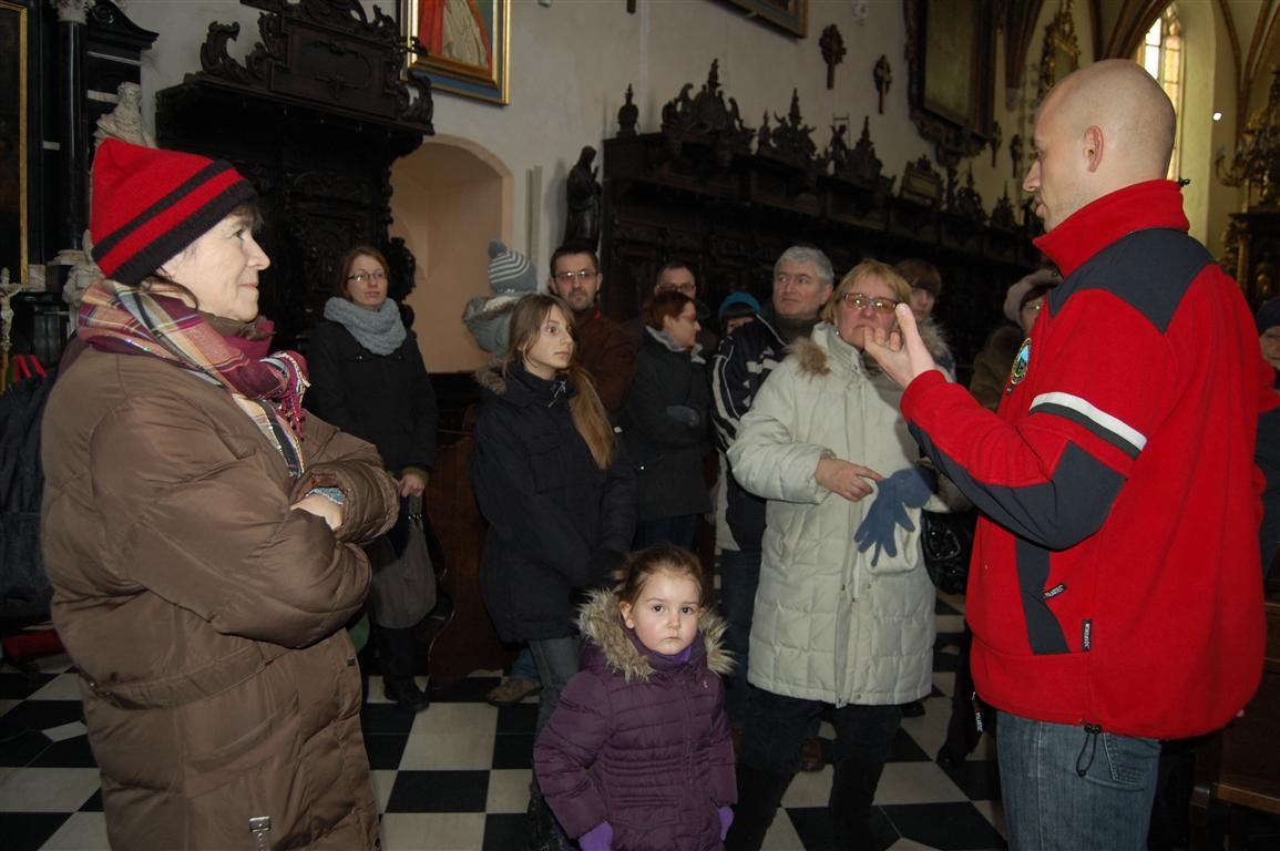 Liczna grupa miejscowych mieszkańców jak i przyjezdnych z Trójmiasta zgromadziła się już o godz. 10:00 przed kolegiatą w Kartuzach. Po przywitaniu się w języku kaszubskim, wycieczkę po tytułem „Ścieżkami rajskiego opactwa” poprowadził Piotr Kowalewski. Pokazał on wszystkie miejsca związane z dawnym klasztorem, również te, które trudno odszukać wśród dzisiejszego otoczenia. Uczestnicy mieli okazję w przystępny sposób poznać życie dawnych kartuzów, którym tętniły mury opactwa Raju Maryi. O wiele więcej czasu niż podczas zwykłego zwiedzania przewodnik poświęcił na szczegółową prezentację wystroju dawnego kościoła konwentualnego i części dzieł malarskich i rzeźbiarskich związanych z zakonem. Interesująca dla wycieczkowiczów okazała się również wspinaczka w głębokim śniegu na owianą legendami Górę Spiczastą, gdzie mieli okazję zobaczyć wnętrze kaplicy Świętego Krzyża fundowaną przed wiekami przez kaszubską kartuzję. Nie zabrakło też ciekawostek i legend i wspólnego odkrywania śladów po dawnym klasztorze we współczesnej zabudowie. Spotkanie zakończyło w surowym, ale przyjemnym otoczeniu piwnic klasztornych, w Kawiarence Pod Refektarzem, gdzie każdy otrzymał drobne upominki i miał okazję skosztować słodkości po promocyjnych cenach.
