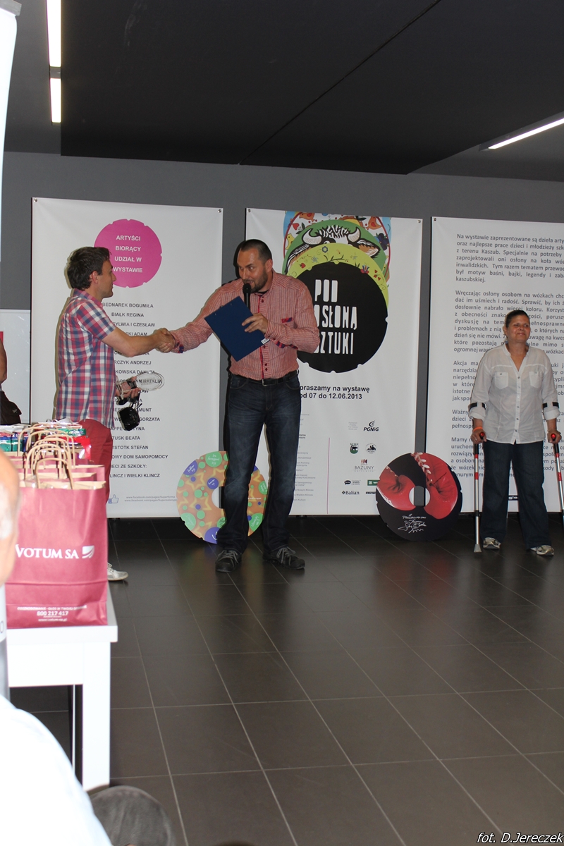 W finale akcji „Pod osłoną sztuki”, który odbył się 9 czerwca w kinie „Remus” w Kościerzynie kolorowe osłony na wózki inwalidzkie trafiły do 14 osób. W rysowanie projektów osłon włączyło się 13 artystów z terenu Kaszub oraz uczniowie dwóch szkół z terenu gminy Kościerzyna. W ten sposób powstało ponad 120 prac, z których najlepsza 30 została zaprezentowana na wystawie.