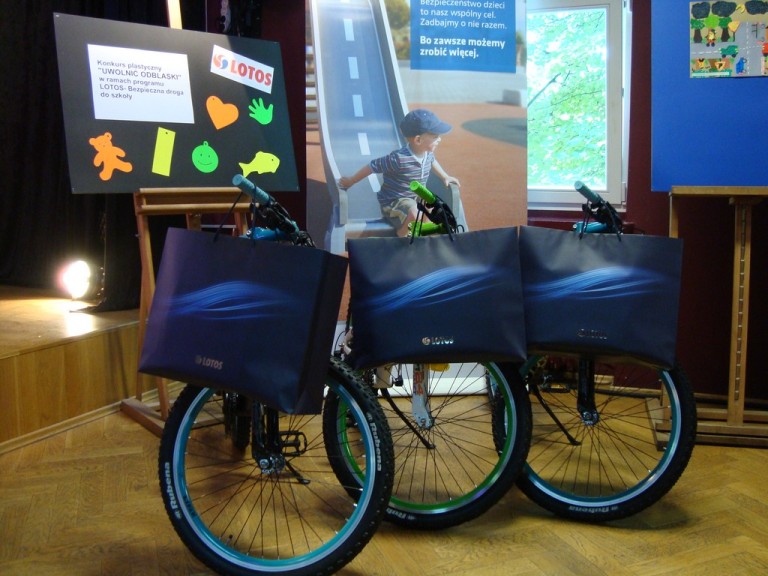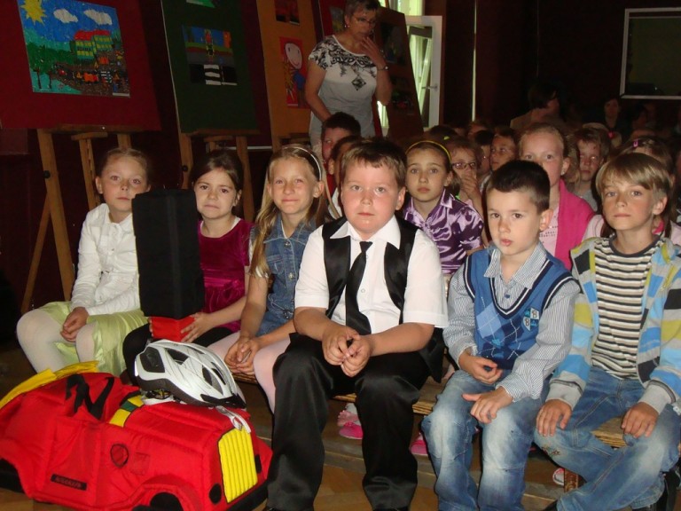 Wszyscy otrzymali medale „Małego ambasadora bezpieczeństwa” oraz upominki. Dla finalisty konkursu oraz dla szkoły organizatorzy ufundowali wspaniałe nagrody w postaci trzech rowerów, kasków i kamizelek odblaskowych oraz znaków drogowych do szkolnego miasteczka ruchu drogowego.