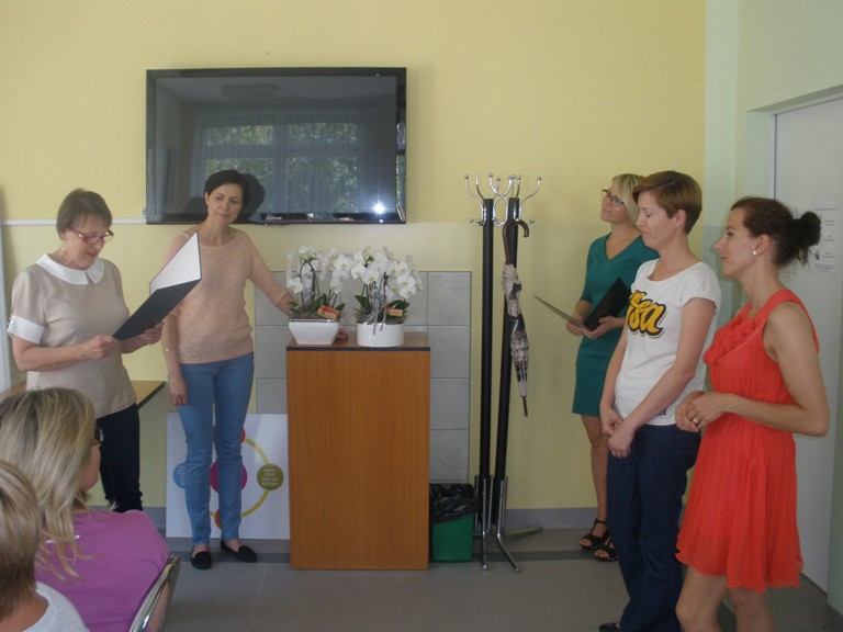 Paniom wręczono list gratulacyjny, kwiaty i upominek.
