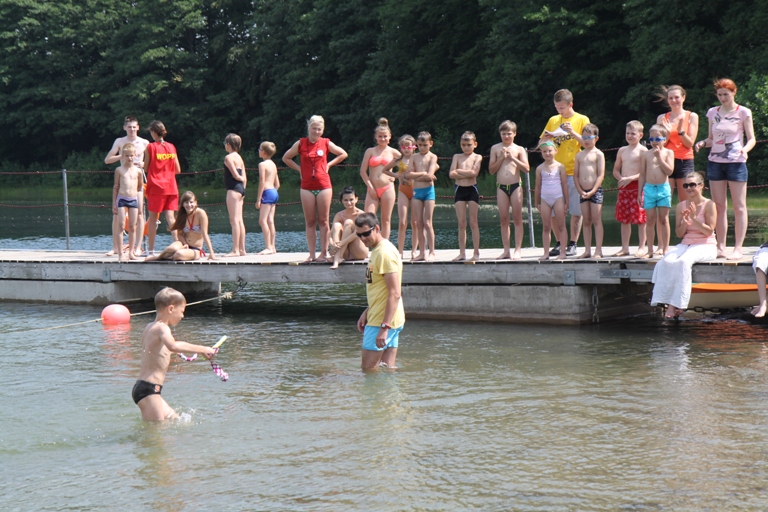 Nie zapomnieliśmy również o najmłodszych, dla których przygotowaliśmy specjalną wodną konkurencję. Polegała ona na jak najszybszym wyłowieniu z wody 3 maskotek. Dzieci nie widząc, w jakie miejsce zostały wyrzucone maskotki musiały szybko zanurkować i je wyłowić. Do tej konkurencji zgłosiło się 15 dzieci.