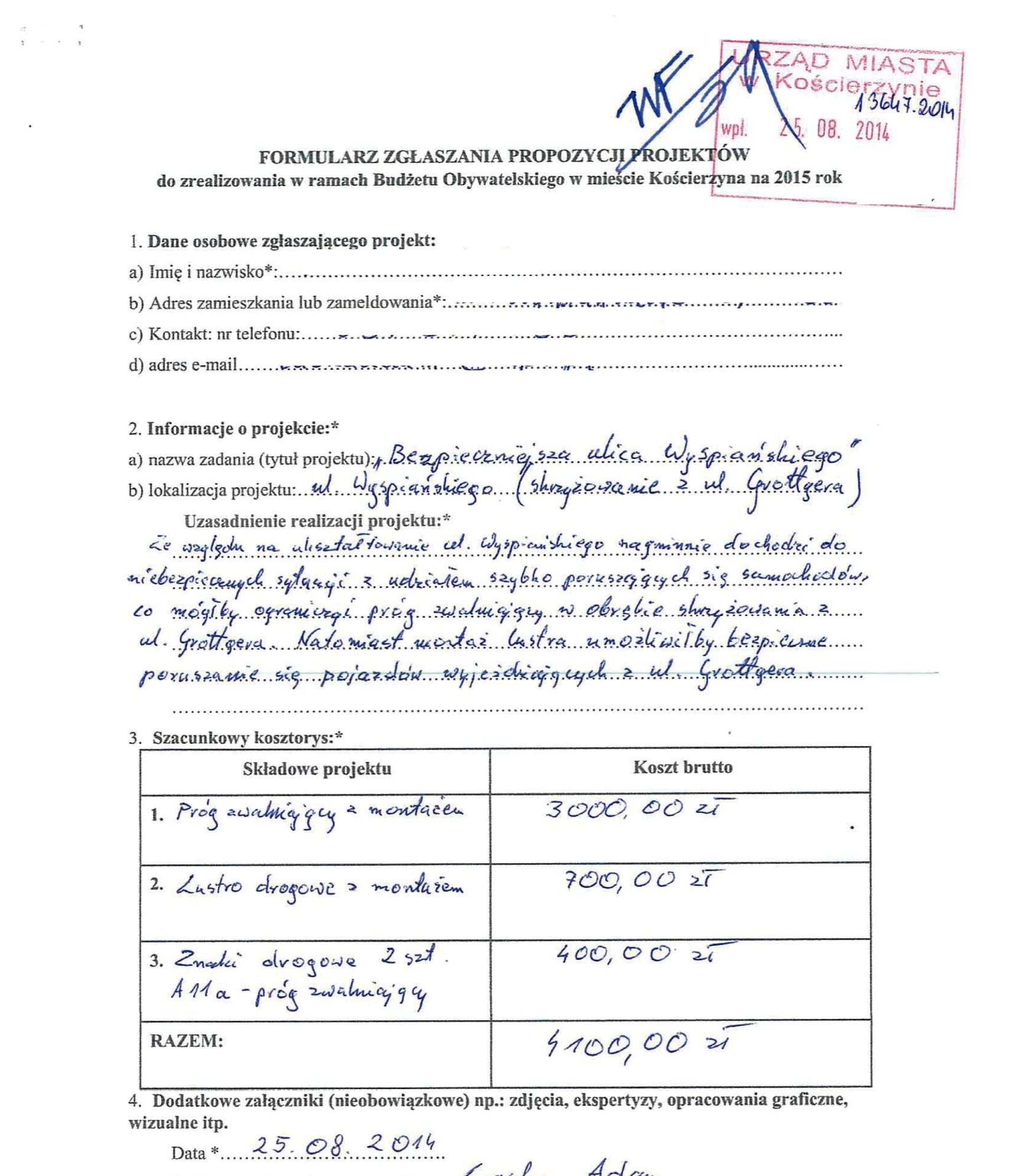 Bezpieczniejsza ulica Wyspiańskiego - WNIOSEK |