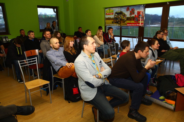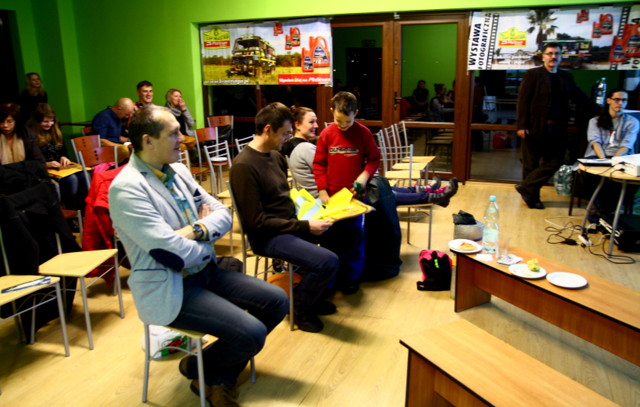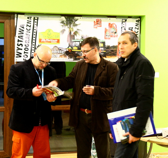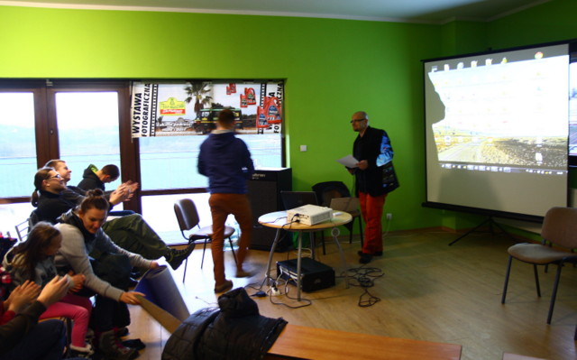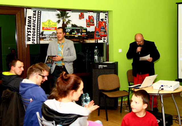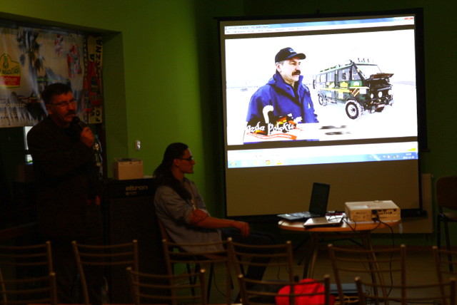 Jacek Jarosik – słodko-gorzki deser na zakończenie spotkania. Słodki, bo wyróżniany na Kolosach za podróże, wyróżniany za zdjęcia przez wydawców, organizatorów imprez ekstremalnych, wyróżniany przez kraje wschodu za budowanie pozytywnych relacji, wyróżniany w branży motoryzacyjnej za realizacje swoich pojazdów terenowo wyprawowych - po prostu człowiek instytucja. Ale deser gorzki - bo nie wystarczyło czasu na pełną prezentację tej malowniczej postaci i osiągnięć, więc .... będzie kolejne z nim spotkanie już 17 stycznia 2015 r. w KOSiR, a wystawa jego autorskich zdjęć - w tym wyróżnianych na wystawach i konkursach, jest aktualnie do obejrzenia w KOSiR - Zapraszamy, wstęp wolny.