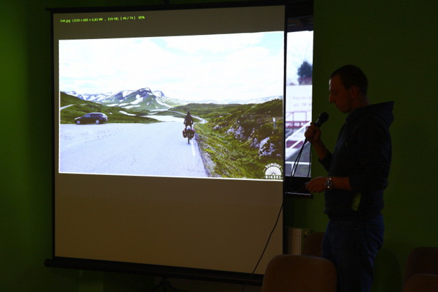 Radek Piotrowski wraz z przyjaciółmi z grupy "Sunday Bikers" wprowadzili rowerową rozgrzewkę i zaprezentowali jak przyjemnie bez dużych pieniędzy można objechać różne miejsca "kontynentu" Skandynawskiego, bo obszary i odległości znaczne, widoki przecudne i bardzo ciekawa opowieść o napotkanych ludziach, otwartych i wcale nie chłodnych. Fotorelacja z podróży była po prostu urzekająca.