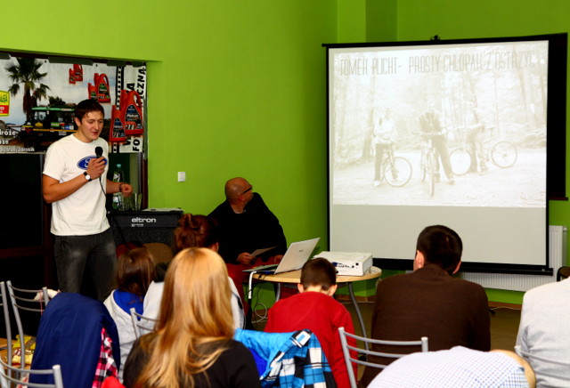 Tomasz Plicht - kolejny gość spotkania i swoiste odkrycie. Po pierwsze, jego prezentacja była przerywana salwami szczerego śmiechu, ponieważ prezentując swoją podróż na rowerze po 21 krajach Europy tj 80 dni i 8000 km, dzielny strażak z Ostrzyc miał dystans do siebie, swoich osiągnięć i świata. Takiego zabawnego występu trudno czasem szukać w kabarecie, więc podróżnik szybko kupił sobie publiczność. Po drugie, zaskoczył wszystkich zebranych, ponieważ opisywał nie miejsca, ale ludzi których spotkał i jakie między nimi zaszły relacje, a nawet nieoczekiwane zwroty akcji i .. podróży. Prezentację zakończył krótkim filmem z TVP, ponieważ w 75 dniu wyprawy został zaproszony do programu "Świat się kręci", gdzie oczywiście wjechał na swoim rowerze, porozmawiał z dziennikarzami i pojechał prosto na Kaszuby. Ten występ można podsumować tylko ostrzeżeniem jak na "używkach" "Spotkanie z tym człowiekiem powoduje trwałą zmianę podejścia do świata i pozytywnie nastawia na resztę życia, więc żałujcie że Was tam nie było"
