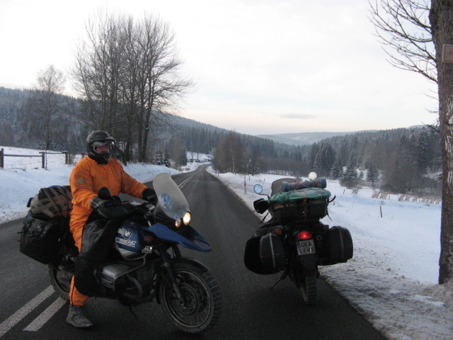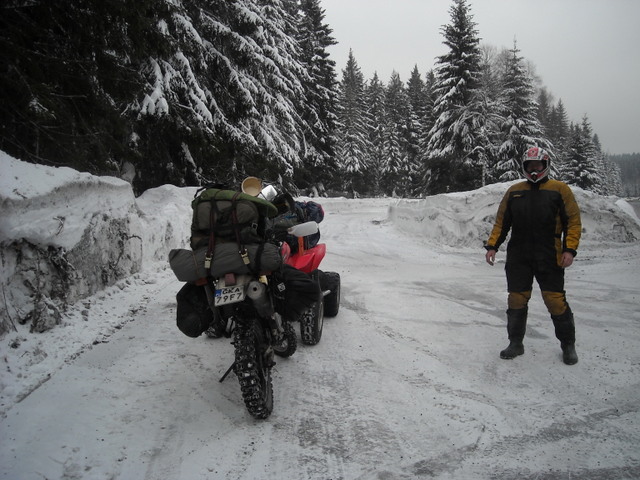 - dwa zwyczajne/niezwyczajne motory, których właściciele używają do zimowego podróżowania po Europie.