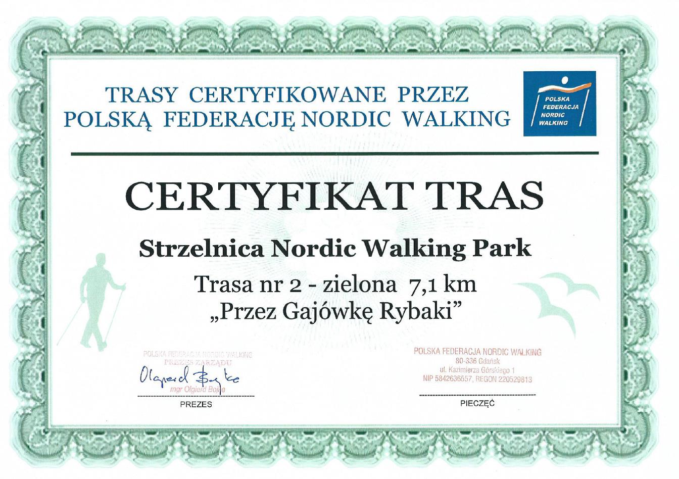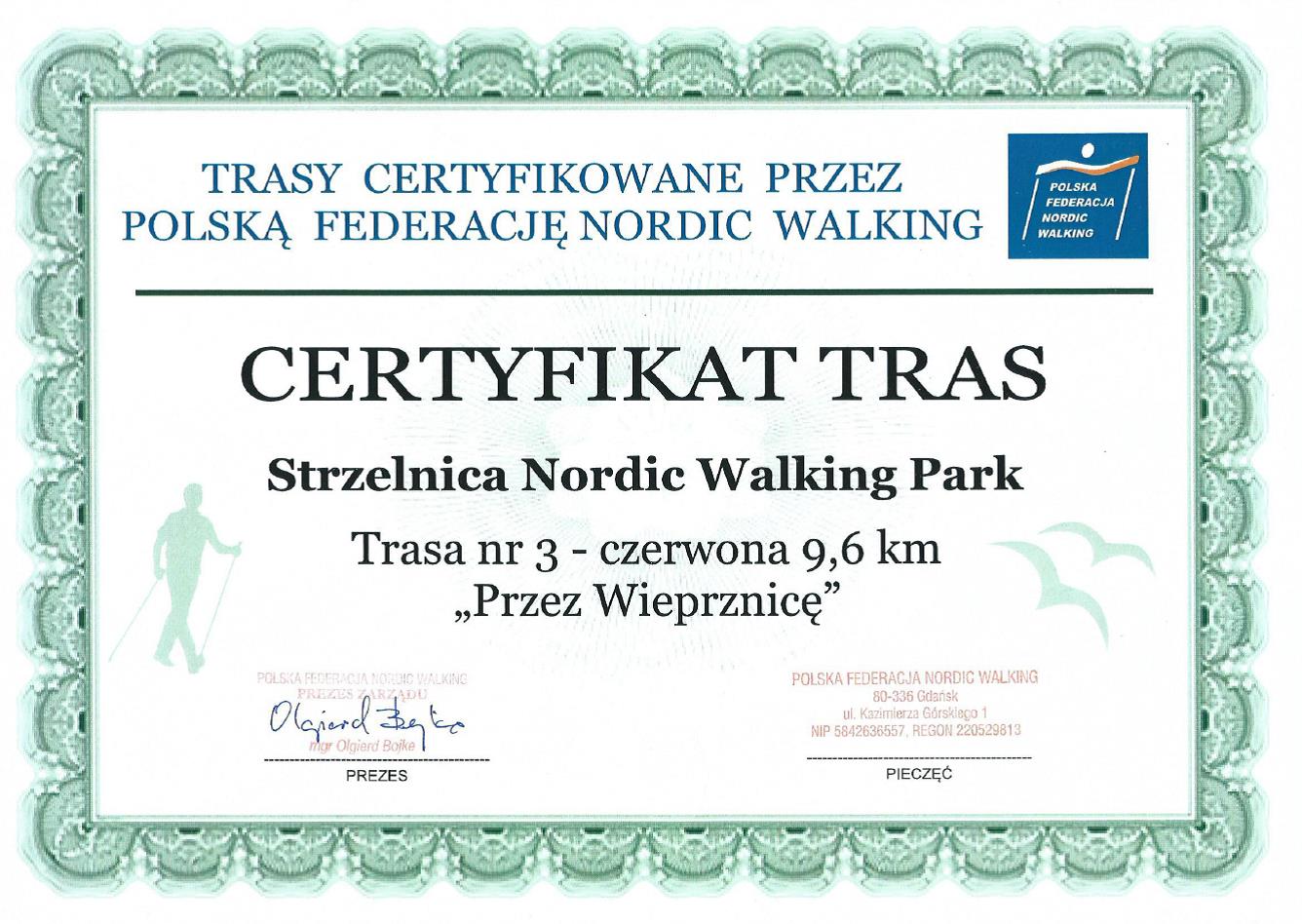 Polska Federacja Nordic Walking przyznała certyfikaty trzem trasom nordic walking znajdującym się w Kościerzynie: