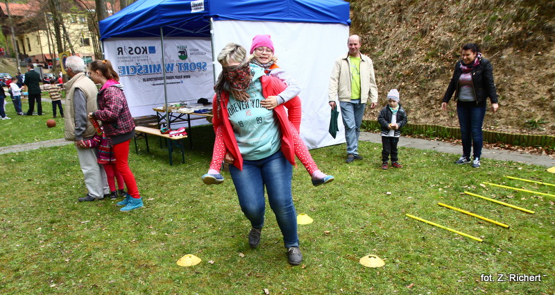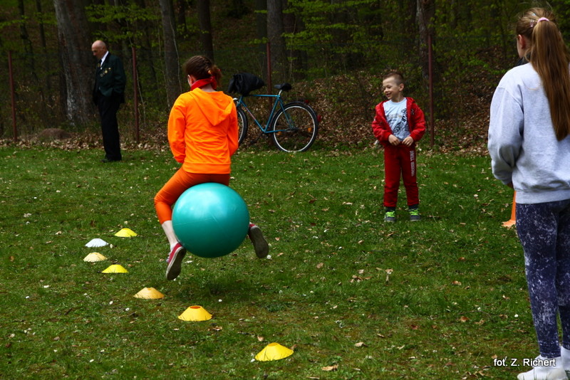 Propozycja KOSiR była skierowana dla wszystkich, z akcentem na wciągnięcie do konkurencji i zabawy par (sztuka prowadzenia) rodzin (rodzinny slalom sprawnościowy) oraz "odważnych" singli (zakręcona równowaga). Więc każda chętna osoba mogła wystartować w konkurencjach "sportowych" zaproponowanych przez KOSiR. Konkurencje to: "rodzinny slalom sprawnościowy", "sztuka prowadzenia" oraz zabawa "zakręcona równowaga". Te trzy propozycje spotkały się z dużym zainteresowaniem, przewinęło się przez nie kilkuset uczestników. Startowały głównie dzieci, które przybyły na piknik wraz z swoimi rodzicami. Wszyscy mogli liczyć na doping swoich opiekunów, a nawet na spólny start. Każdy kto zaliczył wybraną konkurencje otrzymał jabłko, a zdobycie trzech jabłek uprawniało do otrzymania drobnej nagrody rzeczowej, ufundowanej przez Kościerski Ośrodek Sportu i Rekreacji. Niektórzy uczestnicy byli tak zaangażowani, że po kilka razy zaliczali konkurencje. Wszyscy wspaniale się bawili, więc nie odbyło się bez wielu zabawnych sytuacji, w czasie trwania tych mini zawodów. Wielu rodziców odchodziło bardzo dumnych po tym jak widzieli ambitną postawę swoich latorośli. Udział w tych zawodach rekreacyjno – sportowych na pewno pozwolił miło spędzić czas w to niedzielne popołudnie.