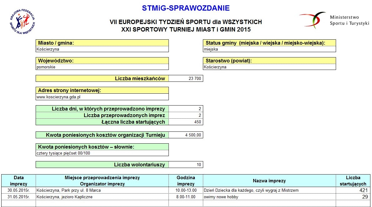 W dniach 26 maj - 1 czerwiec, w tym roku po raz siódmy, organizowany był Europejski Tydzień Sportu dla Wszystkich, w ramach którego, również w Kościerzynie przeprowadzone zostały sportowo-rekreacyjne imprezy.