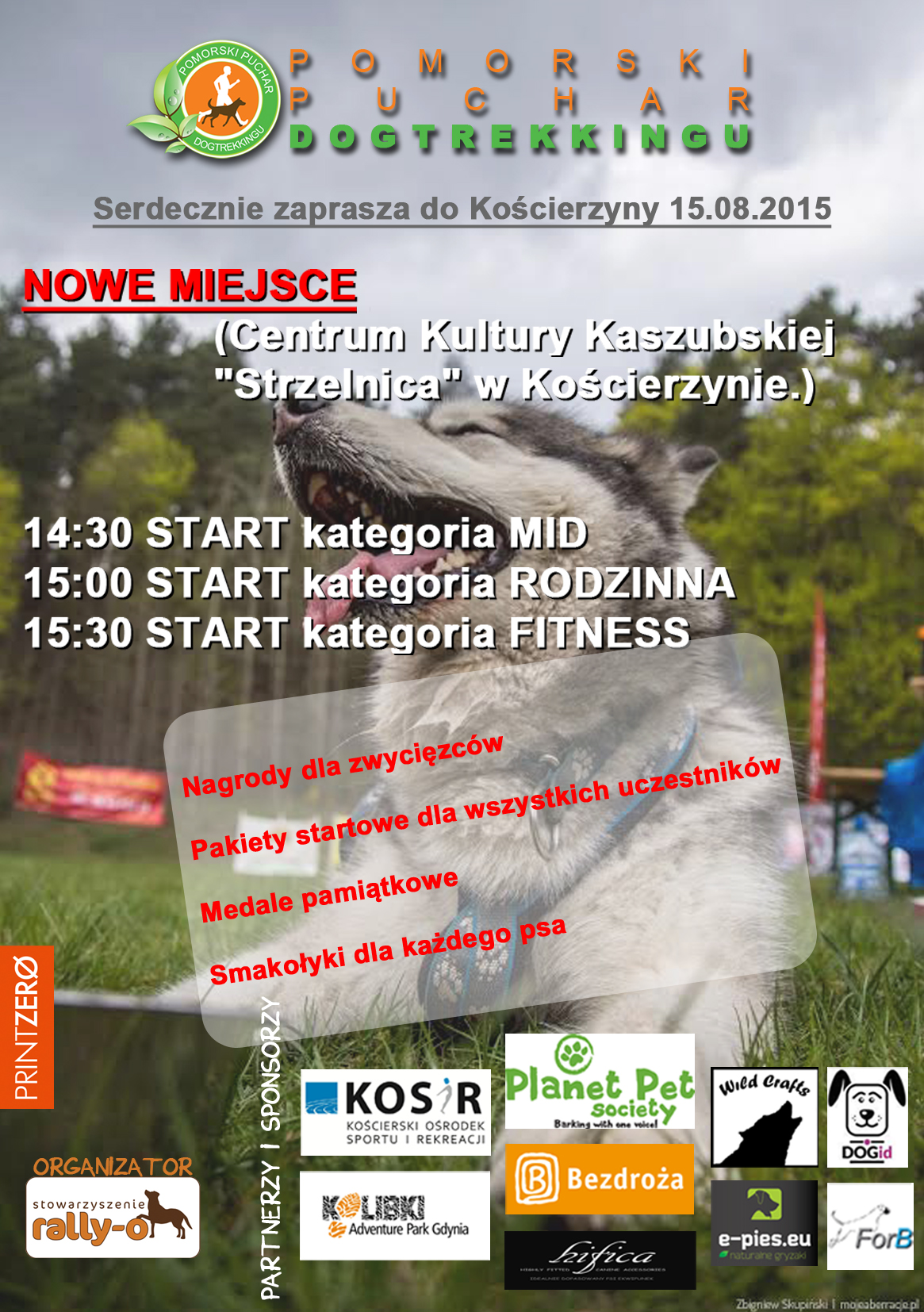 Serdecznie zapraszamy do wzięcia udziału w III edycji Pomorskiego Pucharu Dogtrekkingu w Kościerzynie. Zawody odbędą się w sobotę 15 sierpnia przy Centrum Kultury Kaszubskiej „Strzelnica”.