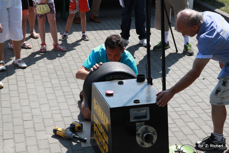 Pierwsza konkurencja tj "pit stop" czyli wymiana koła na czas, została zorganizowana przez samorząd Miasta Kościerzyna, przy wsparciu sponsora tj firmy Tad-meT, która zapewniła urządzenie do tej konkurencji oraz nagrody pocieszenia dla każdego startującego w zawodach. Miasto przygotowało nagrody główne za miejsca w konkrecji. Rywalizacja była zacięta, ale bardzo wyrównana. Najlepszy czas - poniżej minuty, osiągnął zawodnik drużyny powiatowej, który był dopingowany przez swoich kolegów i koleżanki pod "kierunkiem" Starosty Kościerskiego Pani Alicji Żurawskiej.