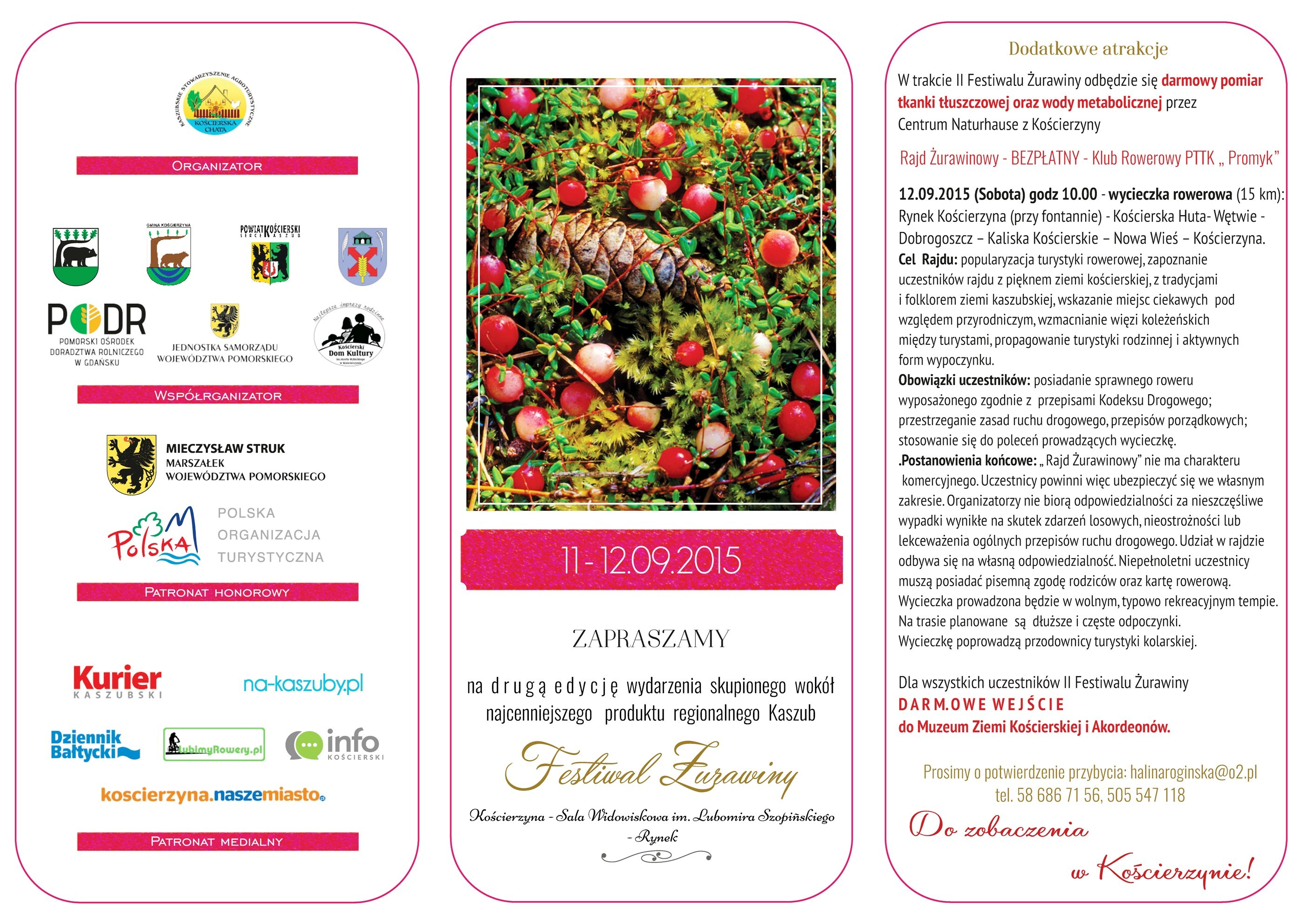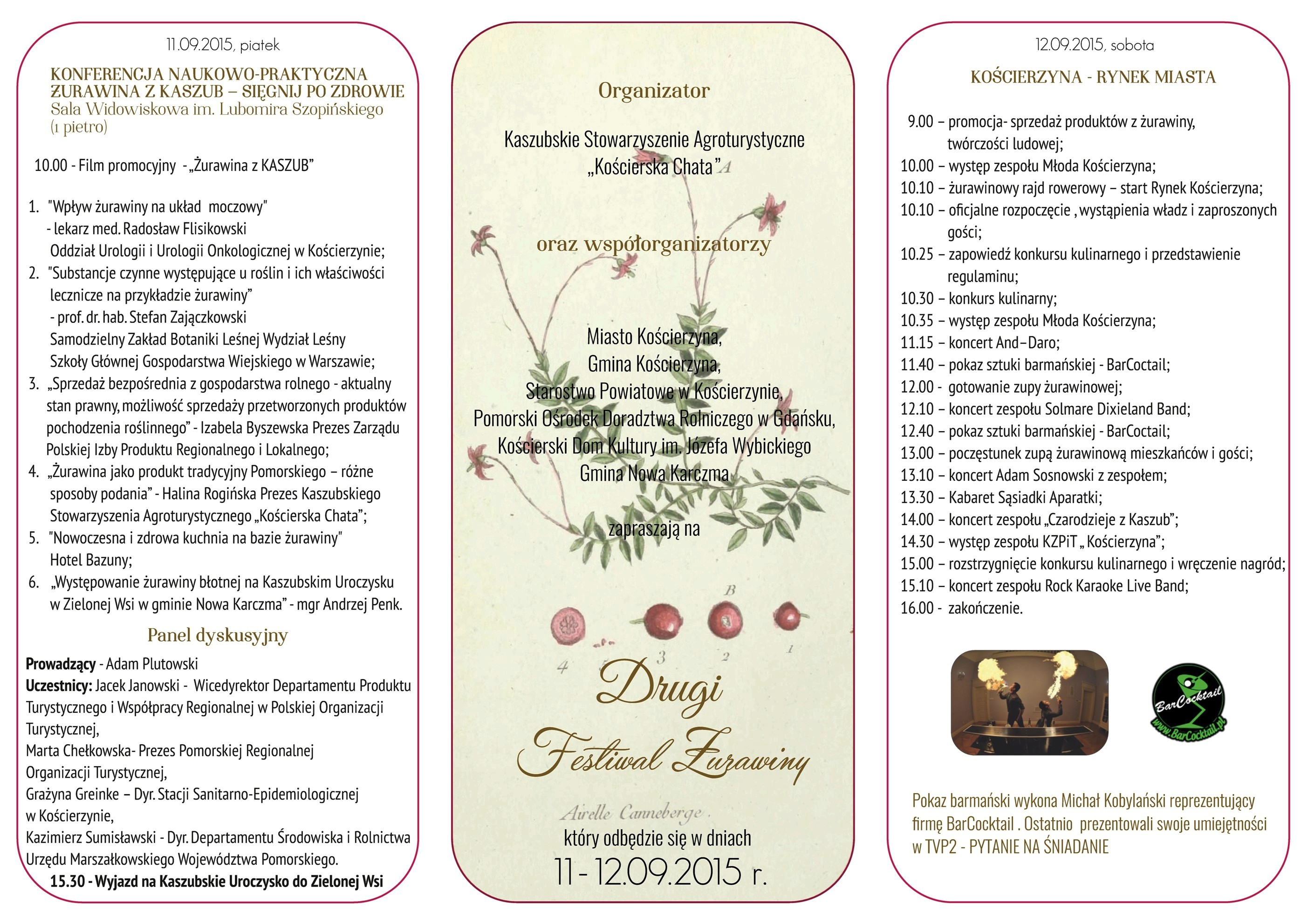 • 11.09.2015 r. - konferencję naukowo-praktyczną pt. Kaszubska żurawina - SIĘGNIJ PO ZDROWIE połączoną z wyjazdem studyjnym na bagna - FORMULARZ ZGŁOSZENIOWY