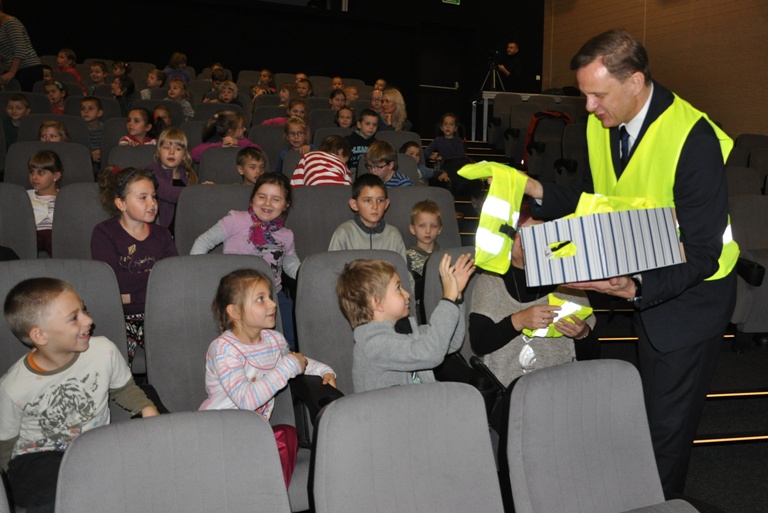 W trakcie interaktywnej zabawy korzystały z zestawów edukacyjnych AUTOCHODZIK zakupionych przez miasto w 2008 r. „Odblaskowe Spotkanie” zainaugurowało Program Kościerzyna – Bezpieczne Miasto. W spotkaniu wzięli udział przedstawiciele Delegatury Kuratorium Oświaty w Kościerzynie, Komendanci Powiatowi Policji i Straży Pożarnej w Kościerzynie a także Komendant Straży Miejskiej. Burmistrz Miasta Zdzisław Czucha zwrócił uwagę na obowiązek noszenia po zmierzchu w terenie niezabudowanym kamizelek odblaskowych. Zaproszeni Goście wraz z władzami Miasta wręczyli uczniom kamizelki odblaskowe z napisem Kościerzyna Bezpieczne Miasto.