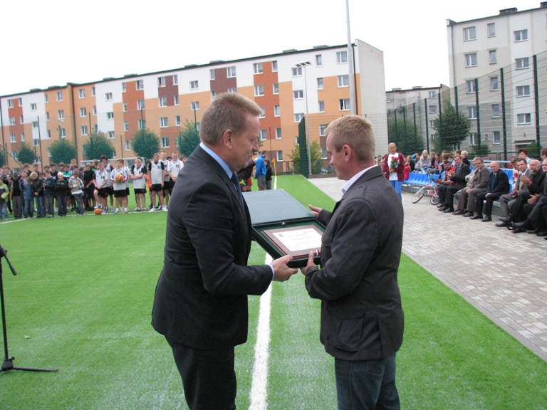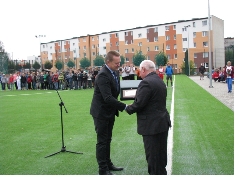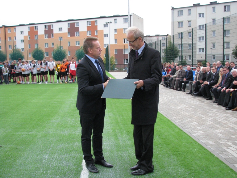 W dniu 7 września br. oficjalnie oddano do użytku kompleks boisk, który powstał w ramach rządowego programu Moje Boisko „Orlik 2012” oraz plac zabaw, zrealizowany w ramach programu „Radosna szkoła”. Obiekty te znajdują się przy Zespole Szkół Publicznych nr 1 w Kościerzynie. Przecięcia symbolicznej wstęgi w obecności uczniów szkoły, dokonały władze samorządowe, senator Roman Zaborowski, poseł Marek Biernacki, wojewoda pomorski Ryszard Stachurski oraz przedstawiciele duchowieństwa i kuratorium oświaty.