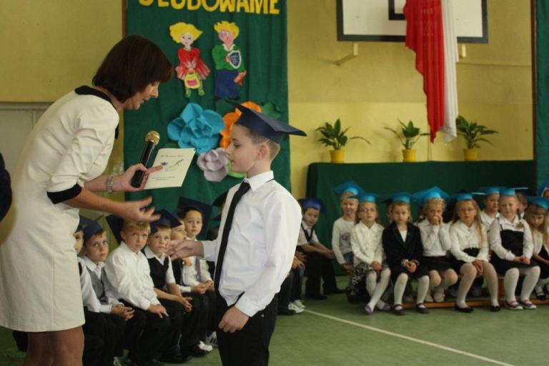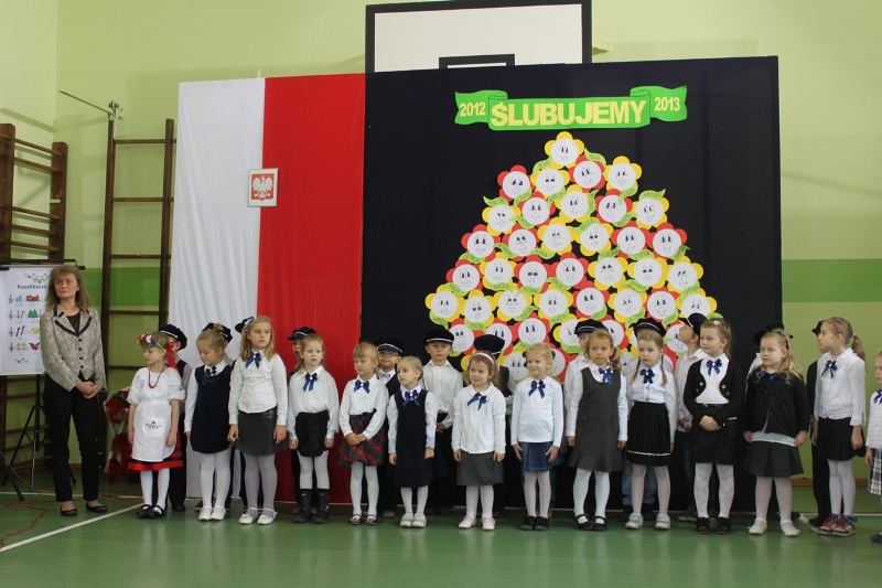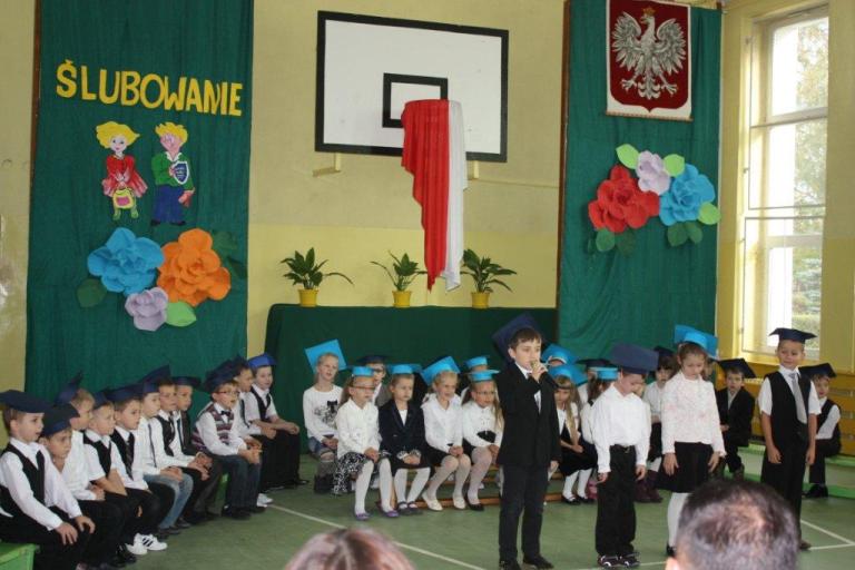 Rozpoczęcie nauki w szkole jest ważnym momentem w życiu dziecka, jak i jego rodziców. Każdy mały człowiek z niepokojem, pewną obawą, ale i z olbrzymim zainteresowaniem przekracza próg szkoły. Ogromne przeżycie stanowi dla maluchów pierwsza szkolna uroczystość – ŚLUBOWANIE PIERWSZOKLASISTÓW. Na ten szczególnie ważny dzień uczniowie czekają z niecierpliwością, bowiem oznacza on oficjalne przyjęcie do społeczności szkolnej.