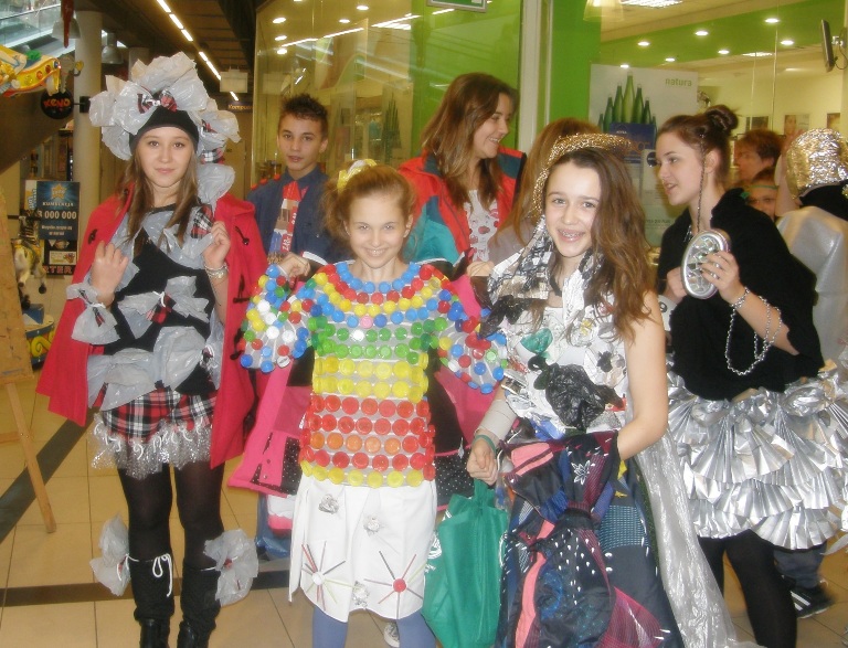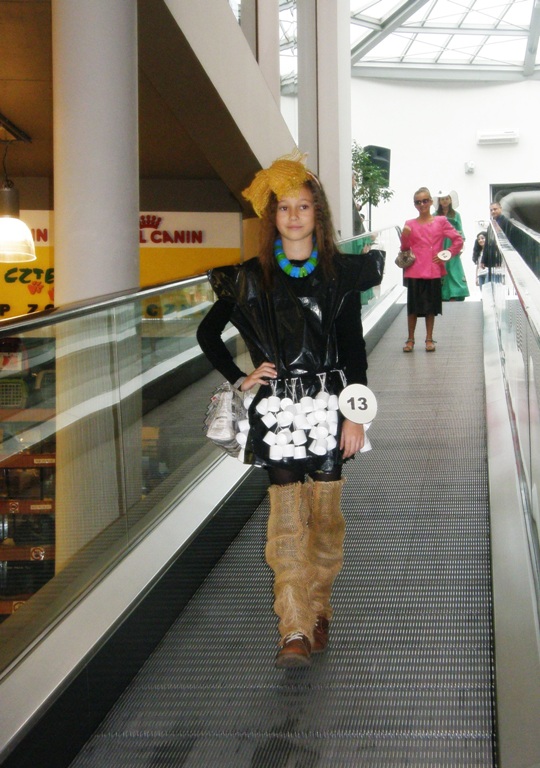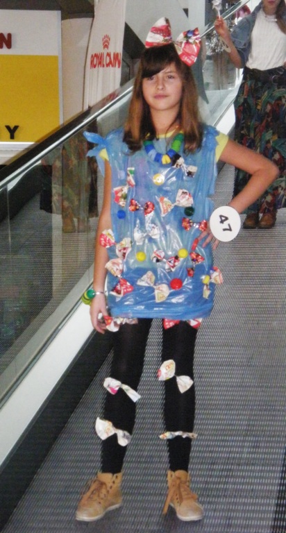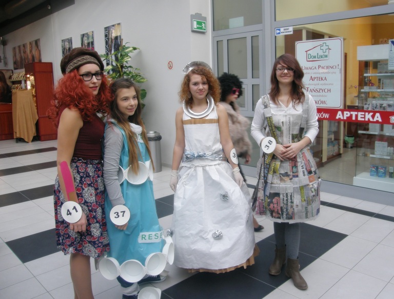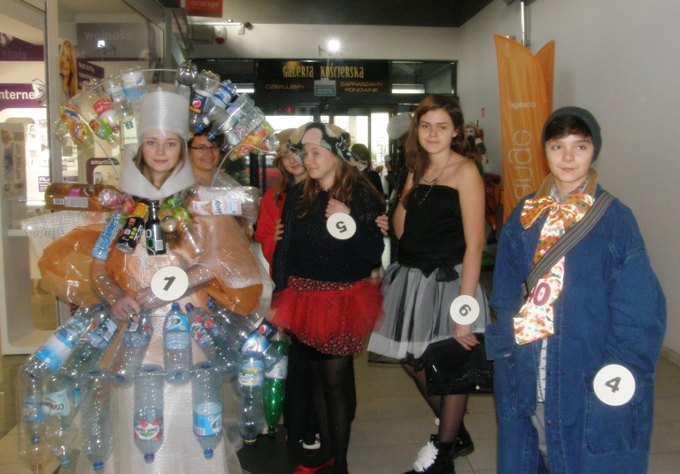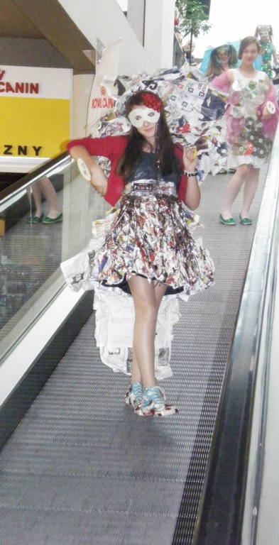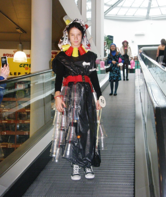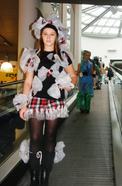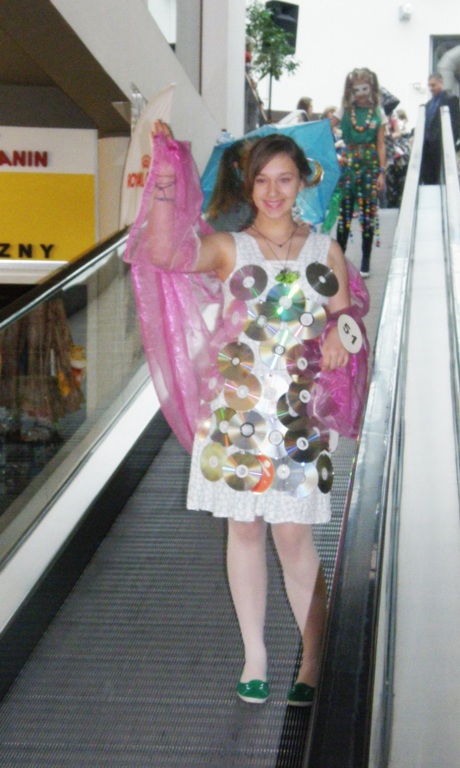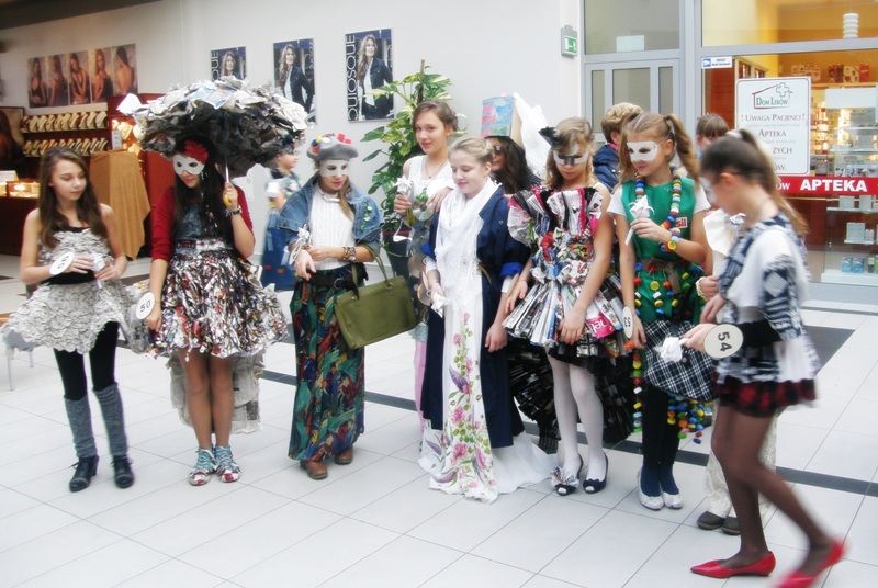 Pokaz mody recyklingowej w Kościerzynie? Czemu nie! W ubiegłą sobotę tj. 23 listopada Galeria Kościerska na krótki czas zamieniła się w prawdziwy wybieg mody. T-shirty z kolorowych gazet, sukienki z plastikowych reklamówek, naszyjniki z zużytych nakrętek i wiele innych rozmaitych kolorowych przebrań zaprezentowali uczniowie kościerskich szkół w czasie pierwszego „Kościerskiego Dnia Energii”.
