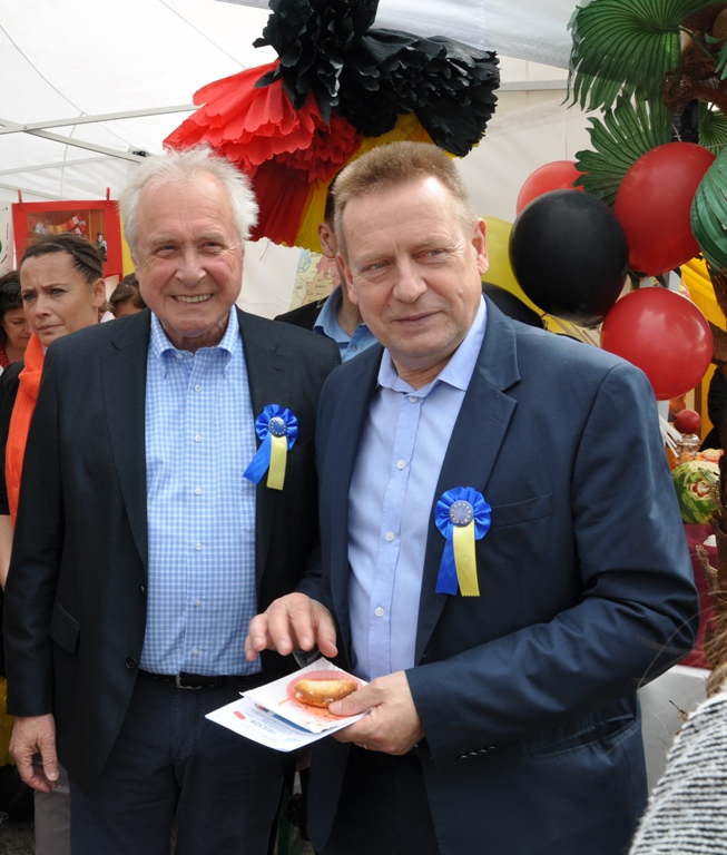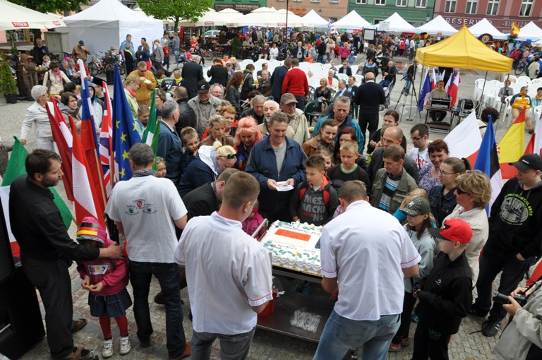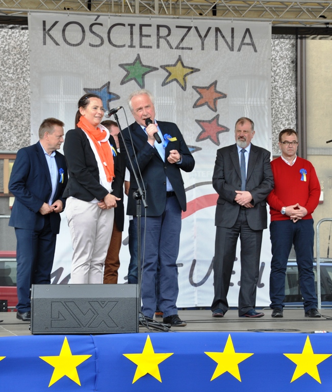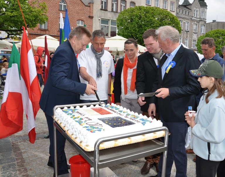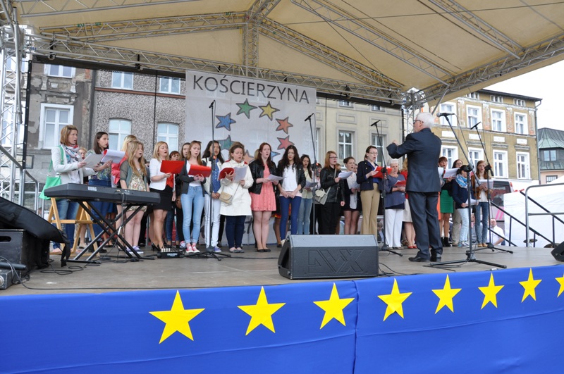 Kto nie był 1-go maja w Kościerzynie ma czego żałować. Spontanicznie, kolorowo, sportowo, rytmicznie i muzycznie świętowała Kościerzyna 10-lecie wstąpienia Polski do Unii Europejskiej. Była i Europejska Parada Rowerów, która na pewno sprawiła wielką radość najmłodszym mieszkańcom naszego miasta i bardzo dużo innych atrakcji jak np. mecz piłki nożnej pomiędzy reprezentacją księży diecezji pelplińskiej i kościerskiego samorządu, pokaz strongmena Sławomira Toczka, podział europejskiego tortu przygotowanego przez Cukiernię Państwa Jarzębińskich.