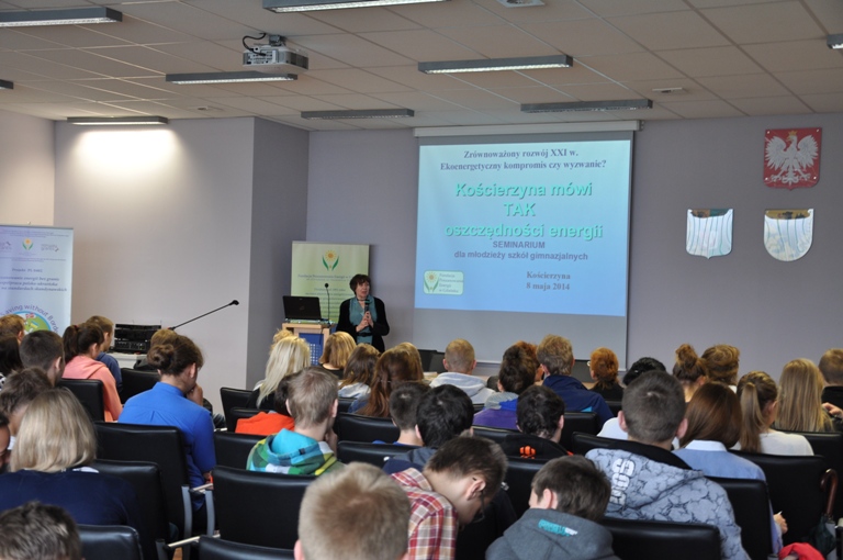 Oszczędzanie energii się opłaca. Wie to młodzież, która w dniu dzisiejszym wzięła udział w seminarium proekologicznym poświęconym tematyce oszczędzania energii. Seminarium zorganizowane zostało dzięki dofinansowaniu z Wojewódzkiego Funduszu Ochrony Środowiska i Gospodarki Wodnej w Gdańsku w ramach Projektu „Kościerzyna mówi TAK oszczędności energii”. Wiedzy na temat oszczędzania energii oraz odnawialnych źródeł energii, licznemu gronu młodzieży, dostarczyli prelegenci z Fundacji Poszanowania Energii oraz Polskiego Stowarzyszenia Pomp Ciepła.