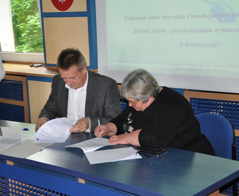 Podpisanie Umów użyczenia z beneficjentami ostatecznymi Projektu „Równ@ szansa – przeciwdziałanie wykluczeniu cyfrowemu w Kościerzynie”