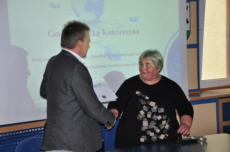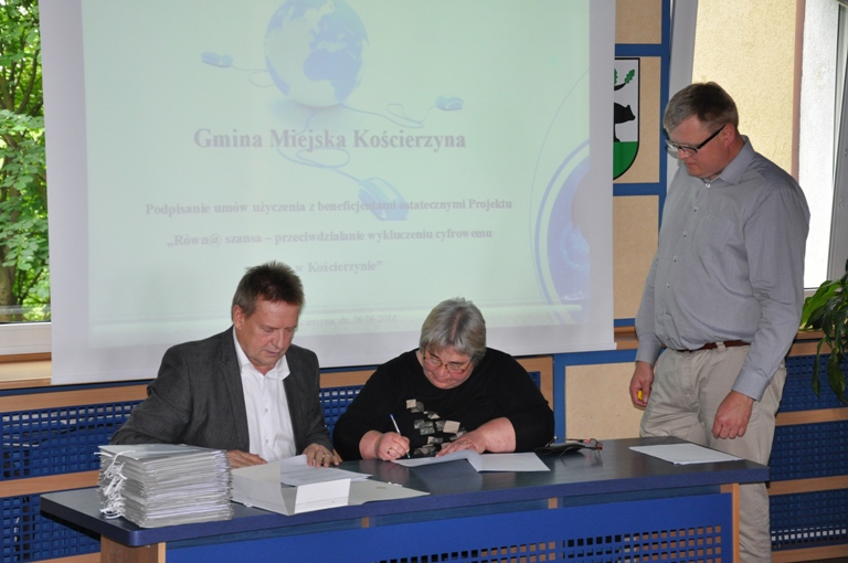 W dniu dzisiejszym czterdziestu mieszkańców Miasta Kościerzyna, którzy w najbliższym czasie otrzymają sprzęt komputerowy wraz z dostępem do Internetu, w towarzystwie Burmistrza Zdzisława Czuchy podpisało umowy użyczenia.