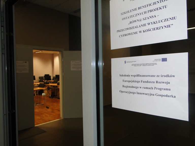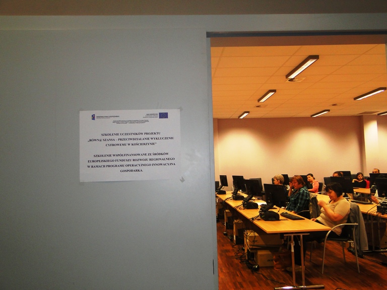 Obsługa systemu operacyjnego, pakietu biurowego, oprogramowania antywirusowego, bezpieczne korzystanie z komputera i z Internetu – tego uczyło się 40 beneficjentów ostatecznych Projektu „Równ@ szansa – przeciwdziałanie wykluczeniu cyfrowemu w Kościerzynie” współfinansowanego ze środków Europejskiego Funduszu Rozwoju Regionalnego w ramach Programu Operacyjnego Innowacyjna Gospodarka.