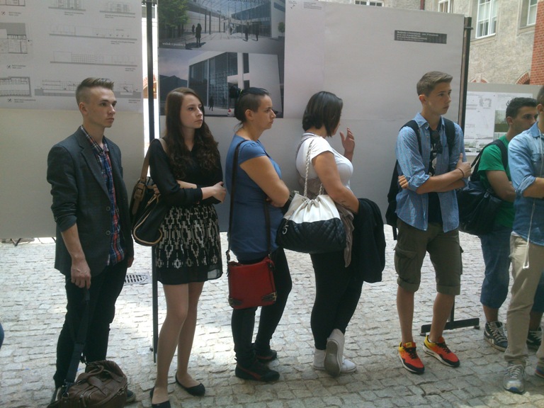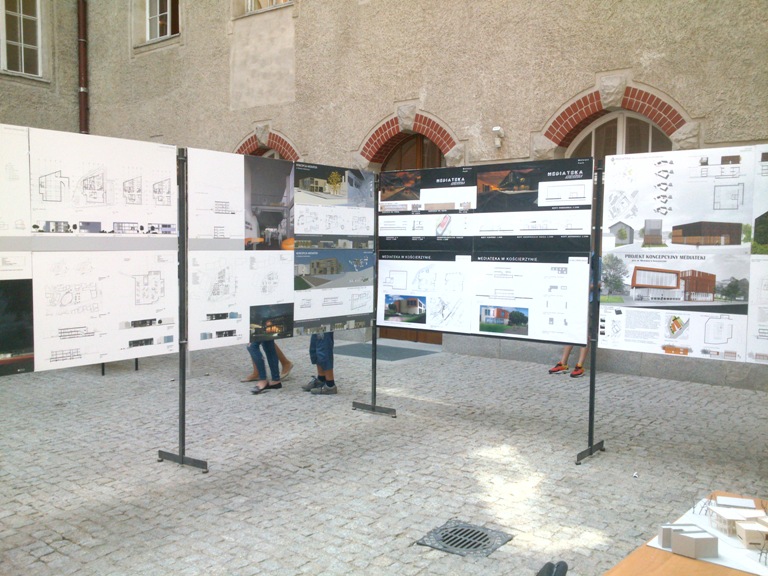 W majowy weekend Radni Młodzieżowej Rady Miasta przeprowadziła na kościerskim rynku sondaż wśród mieszkańców dot. najwyżej ocenianej pracy w konkursie na opracowanie koncepcji na zagospodarowanie terenu wokół pomnika Józefa Wybickiego. Tym razem, młodzi Radni, na zaproszenie i w obecności Burmistrza Zdzisława Czuchy mieli okazję zapoznać się z pracami swoich nieco starszych kolegów – studentów Wydziału Architektury Politechniki Gdańskiej – którzy przystąpili do konkursu na „Opracowanie koncepcji architektoniczno-urbanistycznej mediateki przy ul. Młyńskiej w Kościerzynie” .