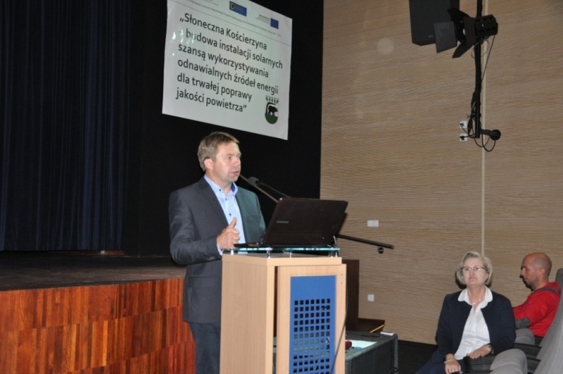 18 września br. podpisano umowę na montaż instalacji solarnych na 125 nieruchomościach z terenu miasta Kościerzyna. Tego samego dnia odbyła się konferencja inaugurująca projekt pn. „Słoneczna Kościerzyna – budowa szansą wykorzystania odnawialnych źródeł energii dla trwałej poprawy jakości powietrza”, w której uczestniczyli mieszkańcy biorący udział w projekcie.
