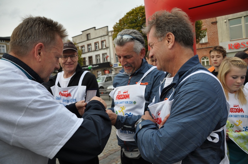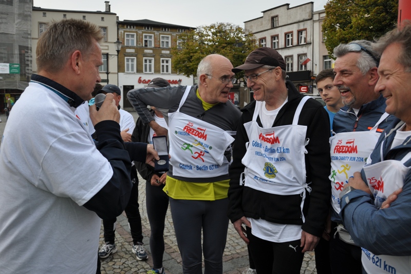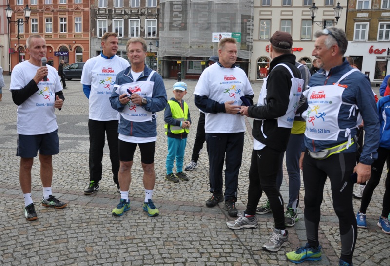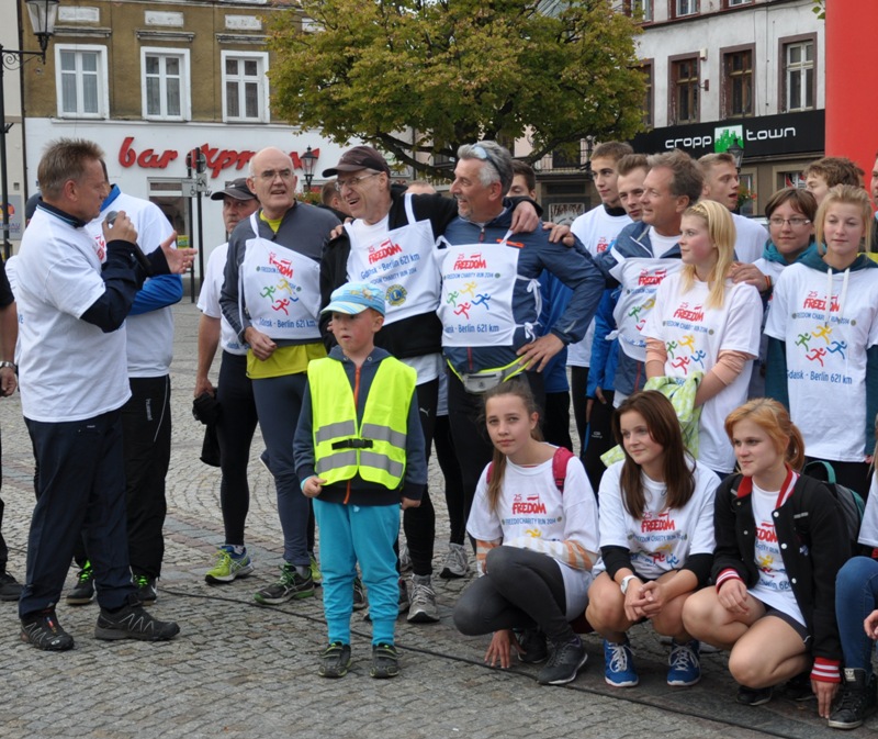 W dniu dzisiejszym ok. godz. 17.15 uczestnicy charytatywnego biegu zameldowali się na kościerskim rynku!. Tempo biegu było tak duże, że zawodnicy na poszczególnych punktach kontrolnych byli przed planowanym czasem. Wszyscy tak bardzo się zaangażowali w ten szczytny cel, jakim jest zebranie funduszy, które w całości zostaną przekazane na pomoc dla dzieci ofiar walk na Majdanie, w Kijowie, na Ukrainie, że bez problemowo ukończyli cały kościerski etap. W maratonie uczestniczyło prawie stu biegaczy! – dziękujemy i zapraszamy jutro!.