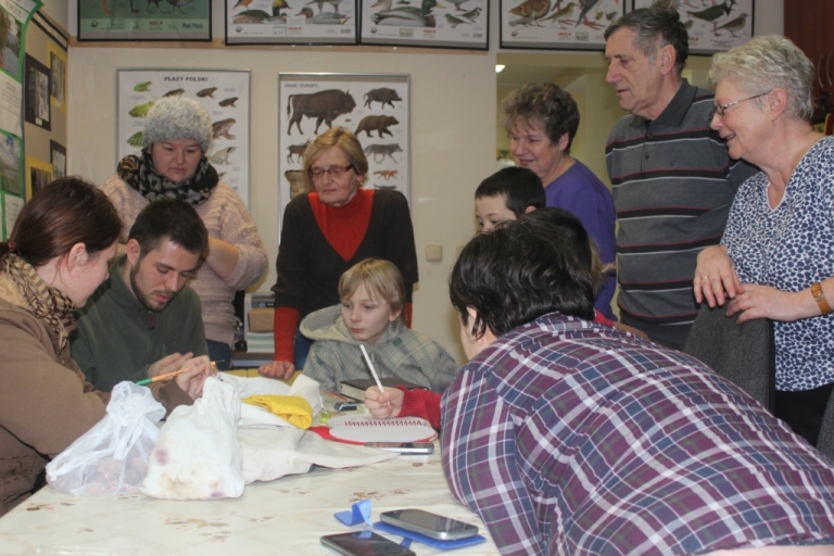 Sobota 17 stycznia w Centrum Kultury Kaszubskiej "Strzelnica" upłynęła pod znakiem obrączkowania ptaków przy karmniku. Działania polegające na łapaniu ptaków przylatujących do karmnika oraz ich obrączkowanie i zbieranie danych merytorycznych ( oznaczanie ptaków, waga, płeć, długość skrzydeł itp.) były prowadzone przez uprawnionego współpracownika Stacji ornitologicznej Pana Marcina Węsiorę.
