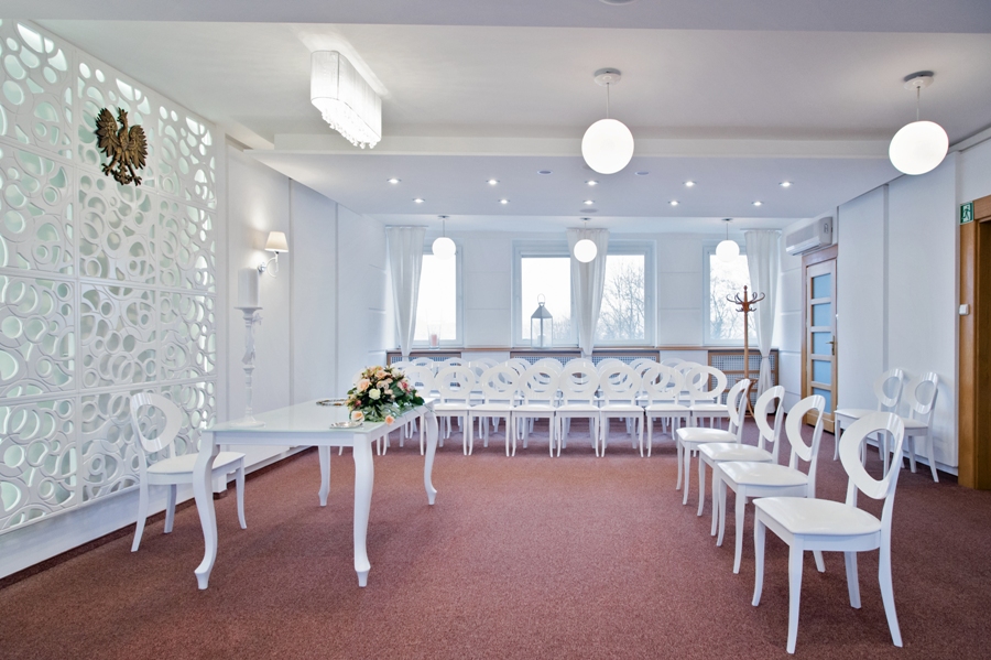 Szanowni Państwo, z przyjemnością prezentujemy oddaną do użytku na początku lutego br. nową Salę Ślubów Urzędu Stanu Cywilnego. Sala została przeniesiona na I piętro Urzędu Miasta Kościerzyna (pok. nr 11) i zaadoptowana wyłącznie na uroczystości zaślubin oraz Jubileusze 50-lecia pożycia małżeńskiego.