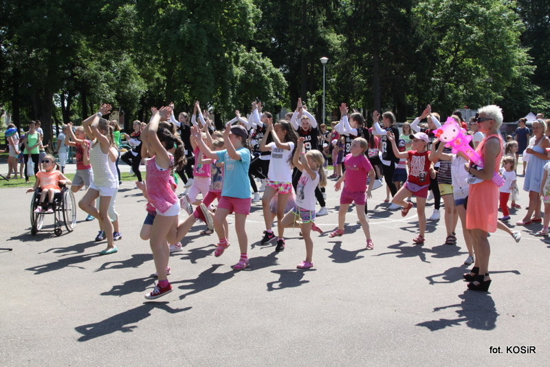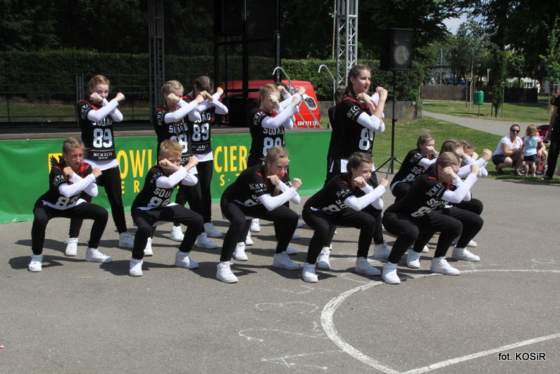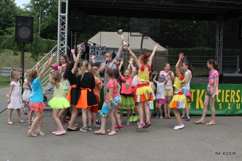 Swe umiejętności taneczne zaprezentował zespół RYTM, który w sposób mistrzowski łączy sport i muzykę, czyli hasła pod jakimi odbywał się Dzień Dziecka. Ekipa odnosi bardzo duże sukcesy i reprezentuje nasze miasto na arenie ogólnopolskiej, a także światowej. Zgromadzona publiczność mogła podziwiać występy formacji, solistów, a także duetów. Rozgrzani i zainspirowani popisami zespołu RYTM w swej konkurencji zmierzyły się miejscowe zespoły taneczne, które stanęły do walki o puchar, który „padł łupem” zespołu działającego przy ZSP nr 1. W występach konkursowych podziwiać mogliśmy i oceniać różne style tańca, gdyż zaprezentowane zostały tańce irlandzkie, układy cheerlederskie, taniec nowoczesny, a także belgijski. Zatem jury nie miało łatwego zadania.