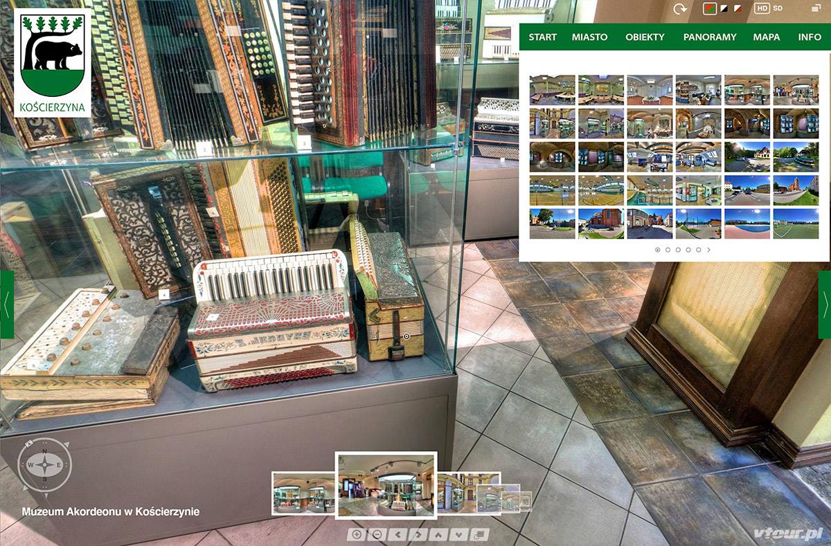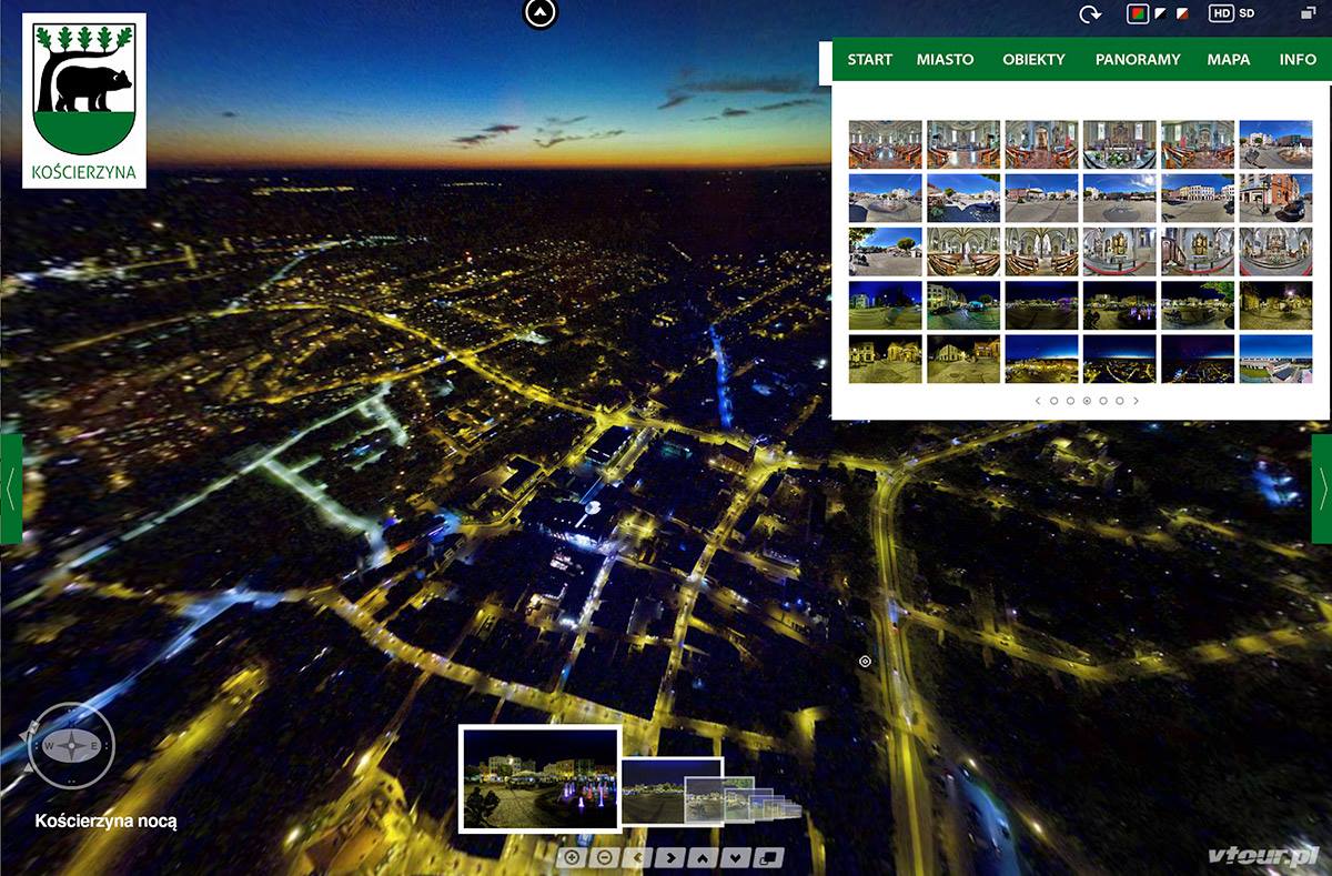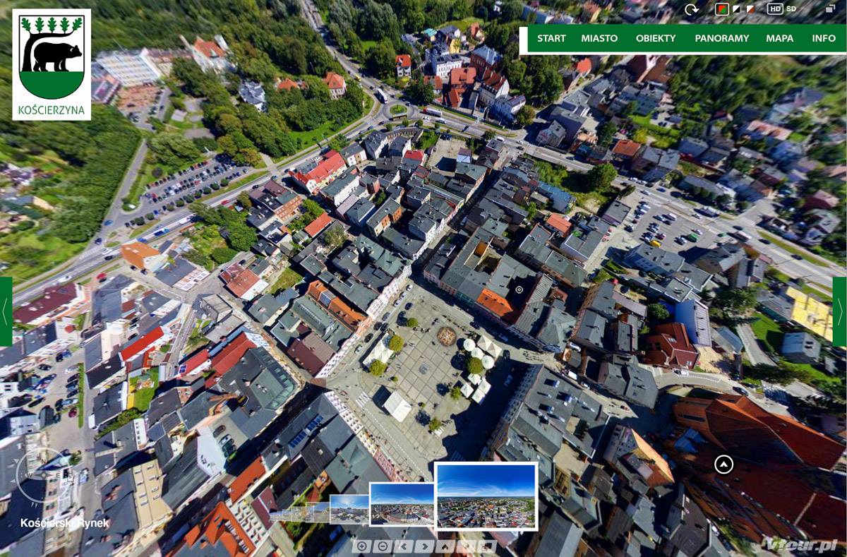 Wirtualny spacer po Kościerzynie – to multimedialna prezentacja zbudowana na bazie panoram, połączona w logiczną całość, dzięki czemu osoby z najbardziej odległych części świata będą mogły zobaczyć i wirtualnie zwiedzić atrakcyjne miejsca w Kościerzynie.