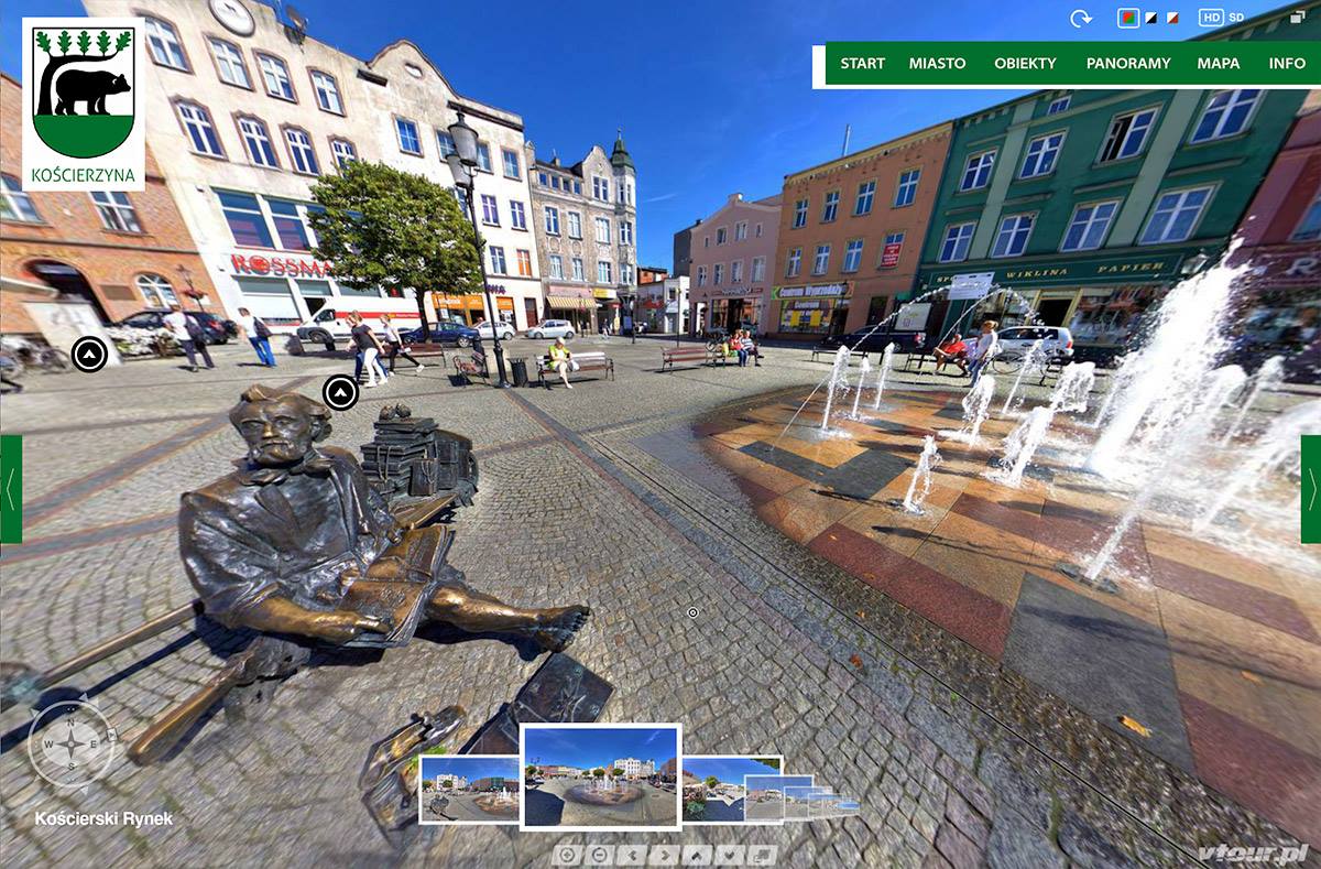 Już dziś możemy się wybrać w różnorodne zakątki naszego miasta. Jak to zrobić? Wystarczy kliknąć w baner o nazwie „Wirtualny Spacer” znajdujący się po lewej stronie na Portalu Miejskim lub w przeglądarce internetowej otworzyć stronę www.vtour.pl/vt/koscierzyna