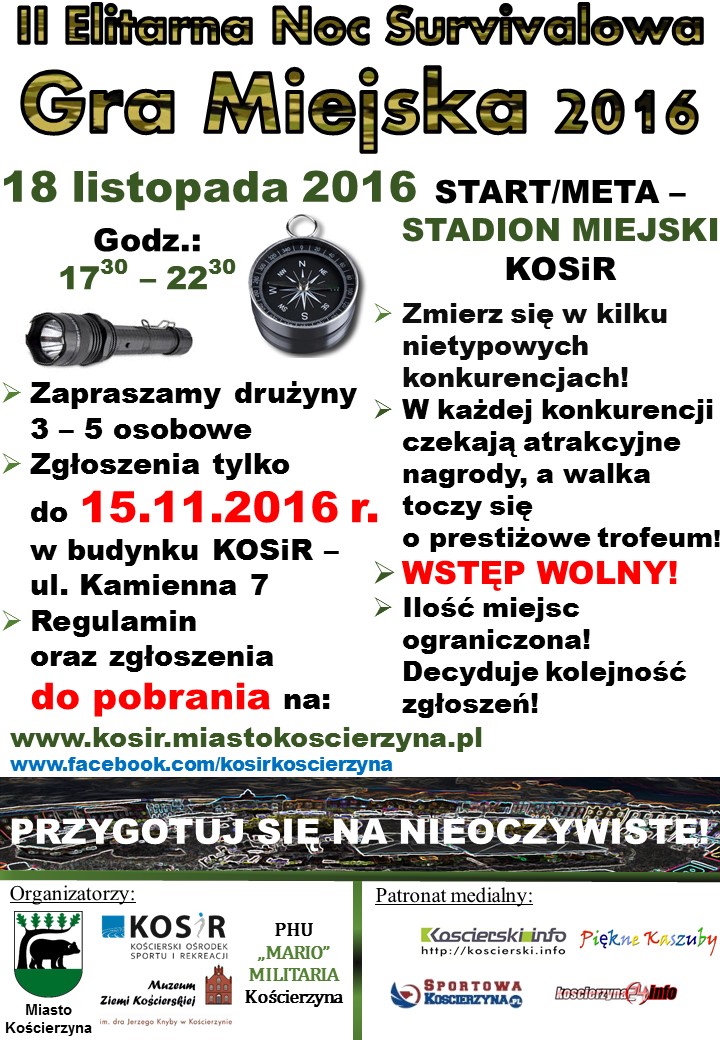 Pełna niespodzianek II Elitarna Noc Survivalowa – Gra Miejska 2016