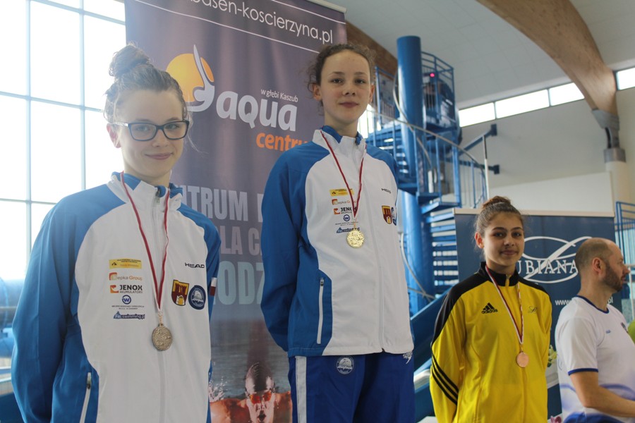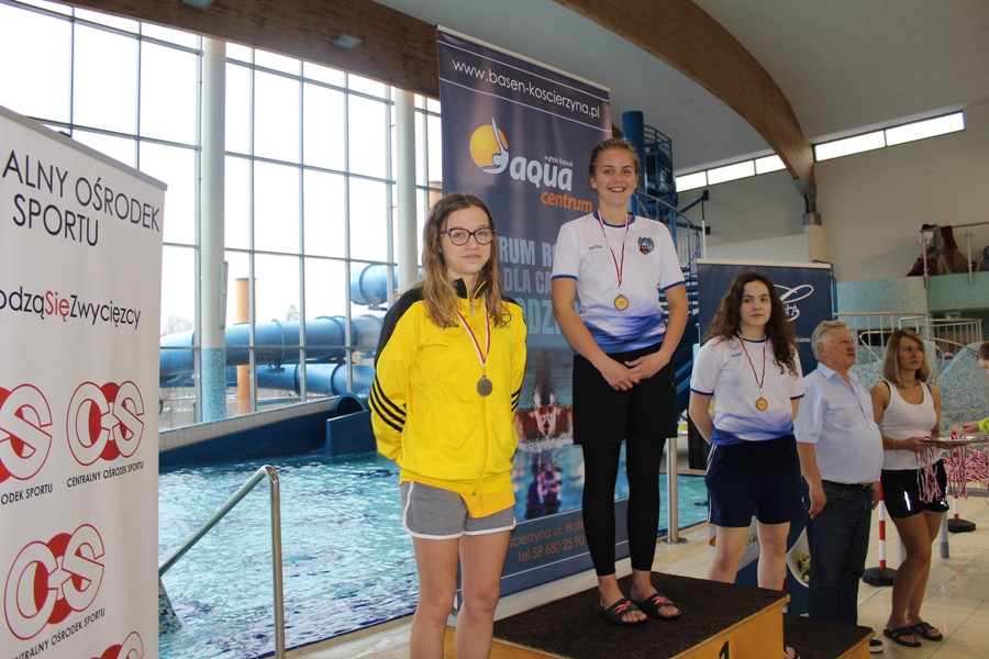 Złoty medal : trzykrotnie Marcin Łukowicz uczeń Gimnazjum Montessori w Kościerzynie i Marta Majewska uczennica I LO w Kościerzynie ;