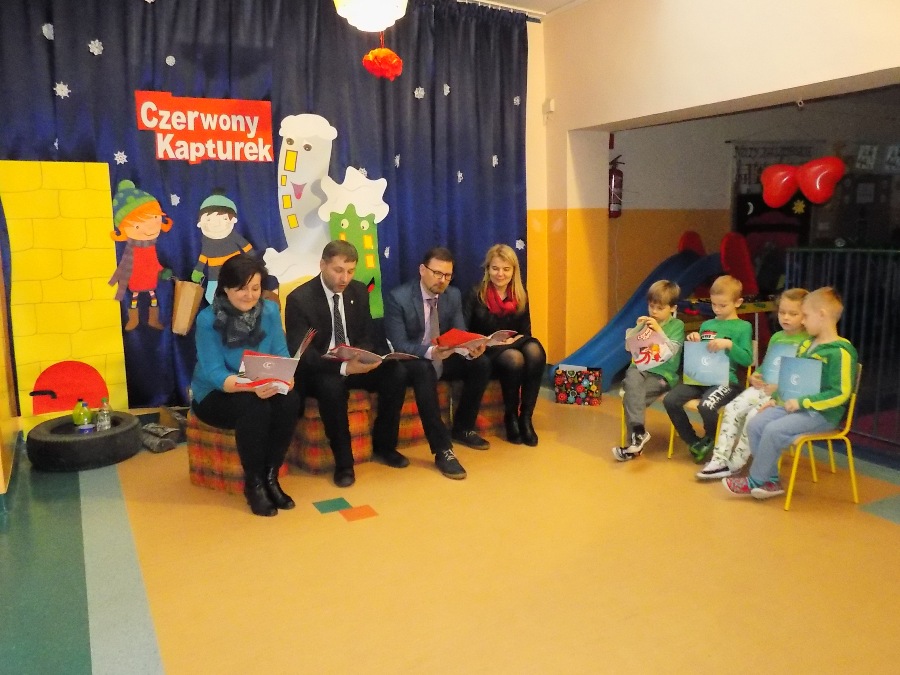 Goście czytali dzieciom nietypową wersję bajki o Czerwonym Kapturku - „Czerwony Kapturek w mieście” oraz „Czerwony Kapturek w mieście zimą”.  Bajki te, kierowane do dzieci, powstały aby rozbudzić dziecięcą wyobraźnię i propagować postawę ekologiczną już od najmłodszych lat.