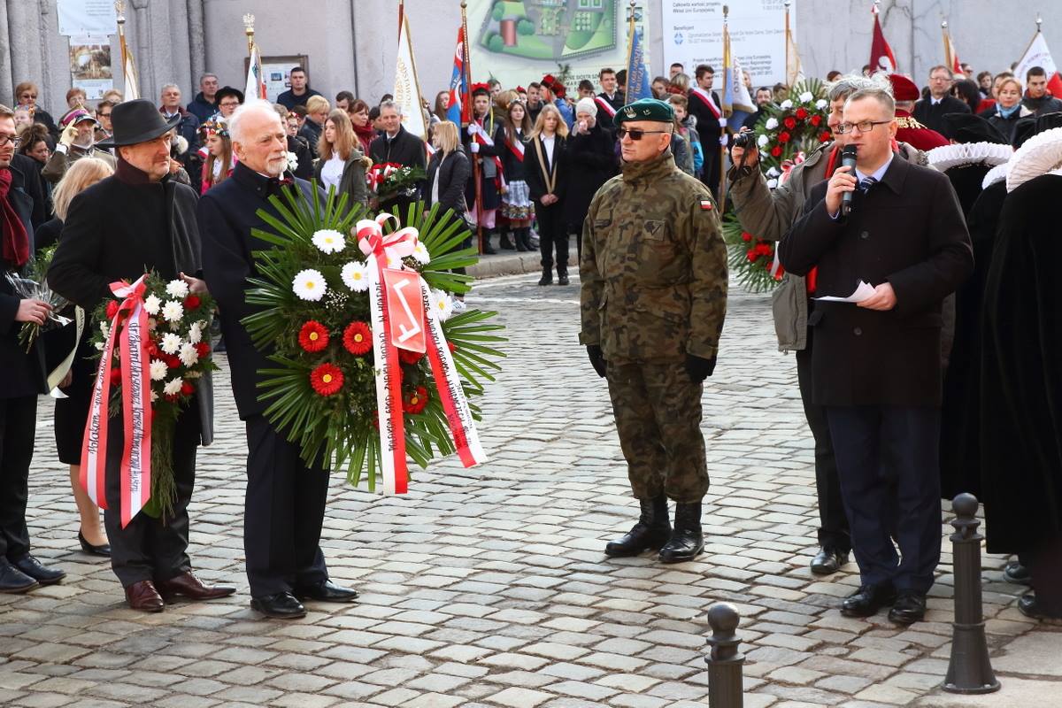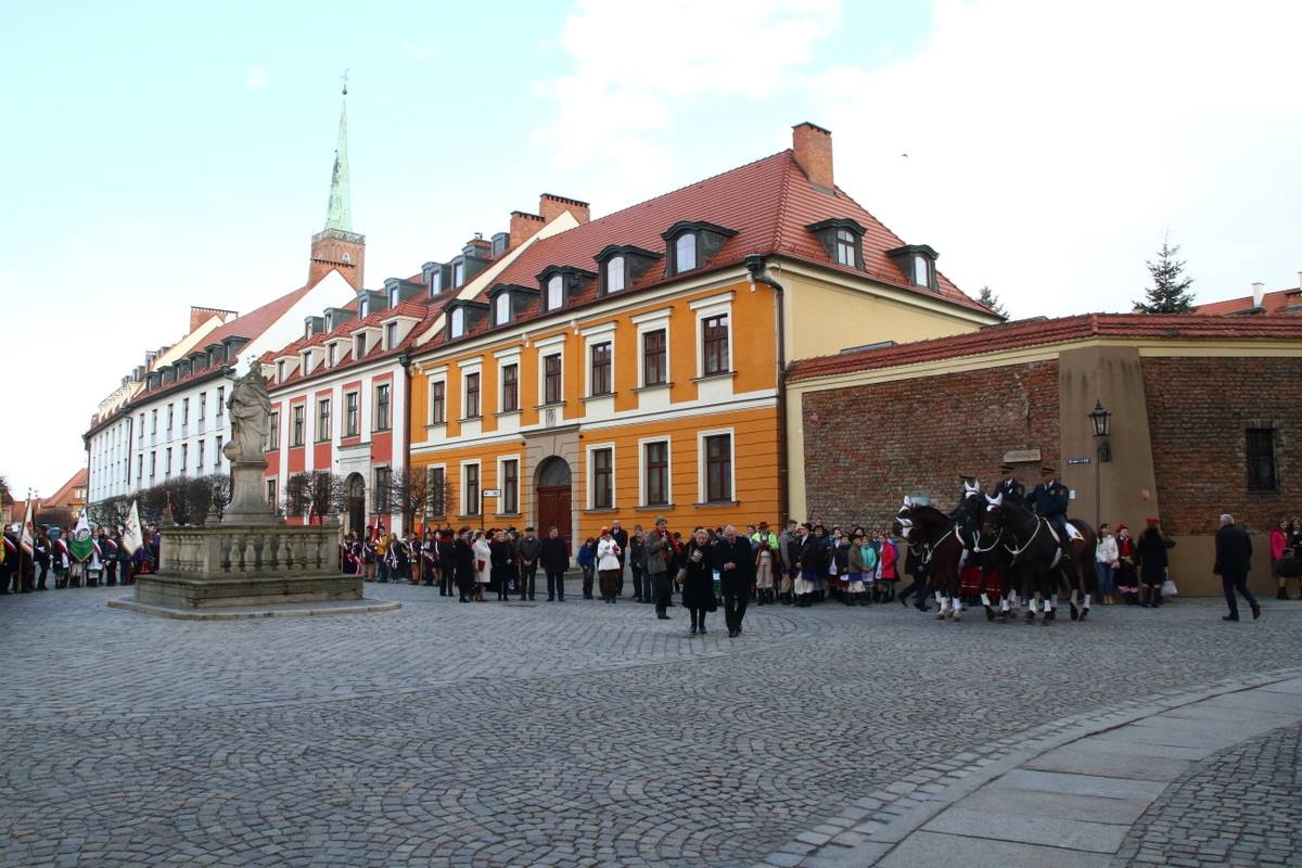 Uroczystości we Wrocławiu rozpoczęły się tradycyjnie złożeniem wieńców pod tablicą z Prawdami Polaków spod Znaku Rodła. W tym miejscu uczczono również pamięć wszystkich zasłużonych Polaków salwami armatnimi. Wydarzeniu towarzyszyła oprawa muzyczna w wykonaniu Orkiestry Reprezentacyjnej Wojsk Lądowych w Wrocławiu oraz asysta honorowa Garnizonu Wrocław z Wyższej Szkoły Oficerskiej Wojsk Lądowych im. Tadeusza Kościuszki.