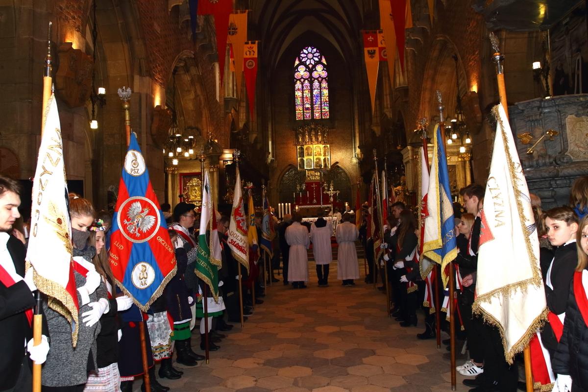 Następnie liczne poczty sztandarowe, delegacje i zaproszeni goście udali się na Mszą św. w Archikatedrze Wrocławskiej pw. św. Jana Chrzciciela w czasie której, homilię wygłosił ks. prałat Marian Szczepiński - Wikariusz Biskupi ds. Życia Konsekrowanego Diecezji Pelplińskiej. Kolejnym punktem obchodów rocznicowych był poczęstunek. Podano między innymi stukilogramowy tort z wizerunkiem Prawd Polaków spod Znaku Rodła i znakiem Rodła przedstawiającym brzegi rzeki Wisły wraz z zaznaczonym Krakowem.