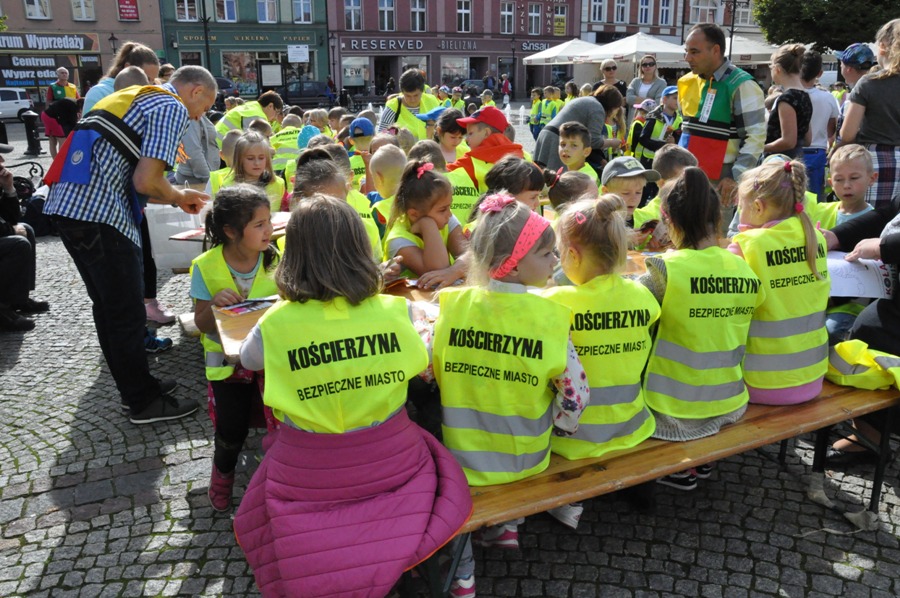 We wtorek o godzinie 10 na Rynku w Kościerzynie Burmistrz spotkał się z ponad 260 pierwszoklasistami z kościerskich podstawówek. Podobnie jak w ubiegłych latach wszystkie dzieci otrzymały kamizelki odblaskowe.