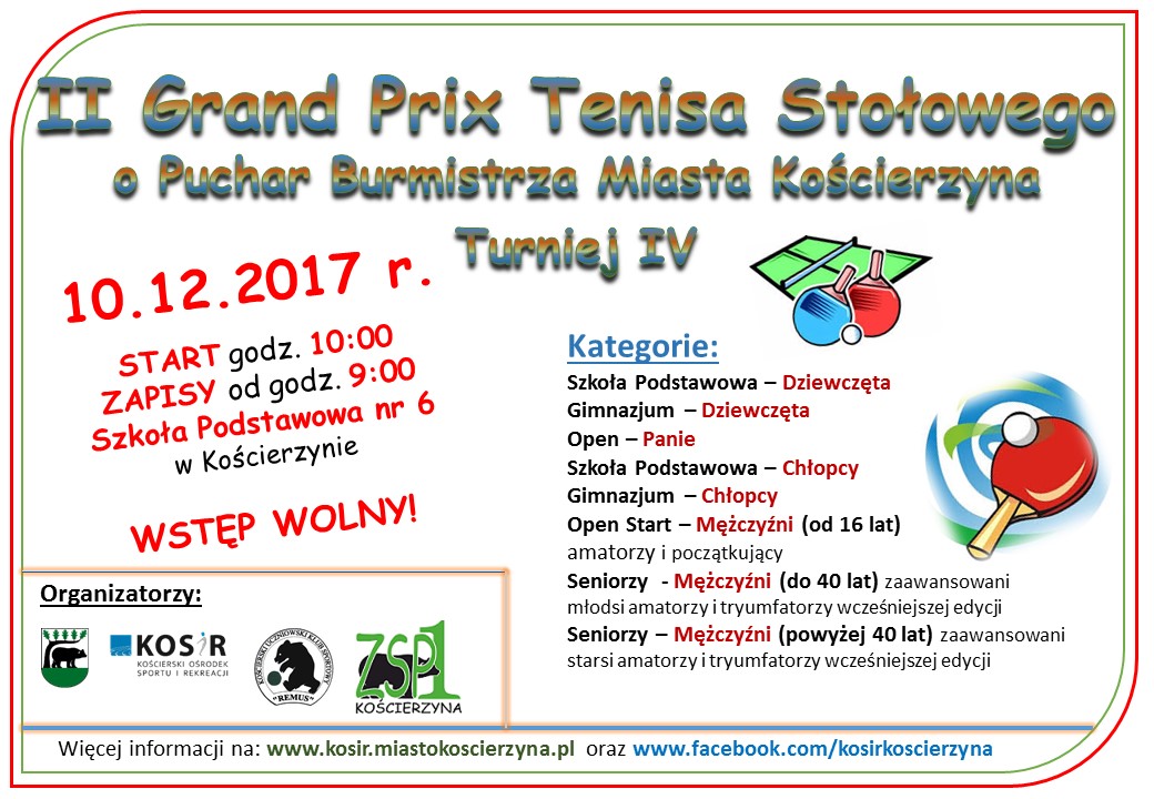 / Aktualności / II Grand Prix Tenisa Stołowego o Puchar Burmistrza Miasta Kościerzyna 2017 – podsumowanie