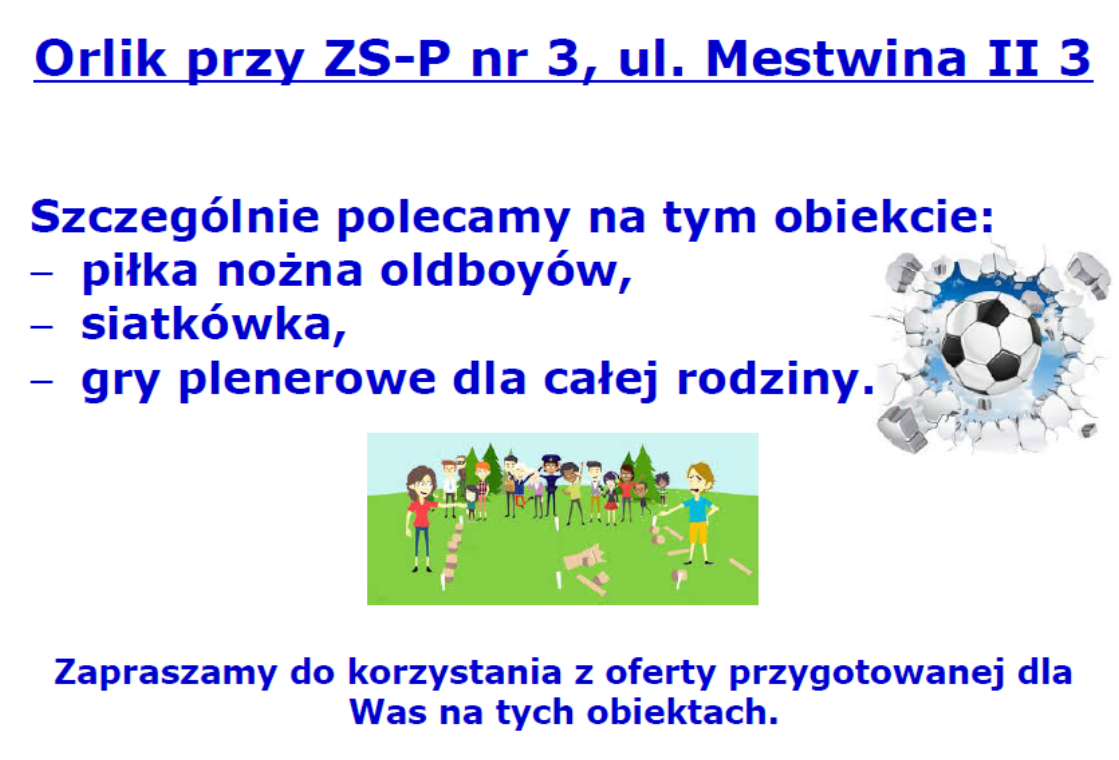 Zachęcamy do zapoznania się z ofertą, najlepiej bezpośrednio u Animatorów na obiektach sportowych.