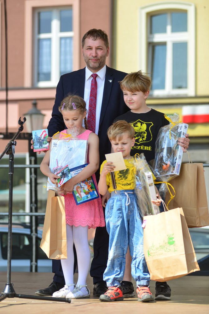 Nagrodzono także wszystkich uczestników i laureatów konkursu na nadanie imion i zredagowanie opowiadania o kościerskich Stolemach. Jedno z nich odczytała autorka Marta Kujach. Natomiast Marat Majewska zapoznała wszystkich z symboliką Stolemów. Podczas uroczystości odsłonięto figurę Stolema przy Muzeum Ziemi Kościerskiej jako przedstawiciela całej sieci kościerskich Stolemów. Zachęcamy wszystkich do spaceru po Kościerzynie i odnalezienia pozostałych figurek Stolemów. Mamy nadzieję, że figurki na stałe wpiszą się w przestrzeń miasta, dostarczając jego mieszkańcom i turystom wielu pozytywnych wrażeń.